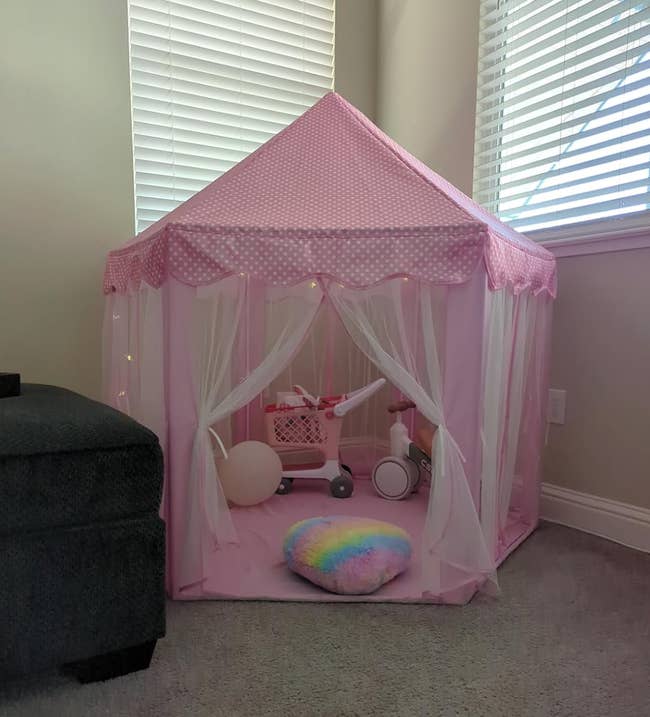 Promising review: "The tent is lightweight and easy to set up. The material feels soft and suitable for children, and the size is perfect for playtime. It provides a fun space for kids to play or relax. The design matches the photos and was well received." —Yare pulg