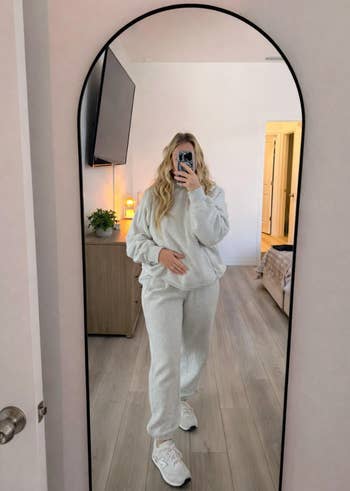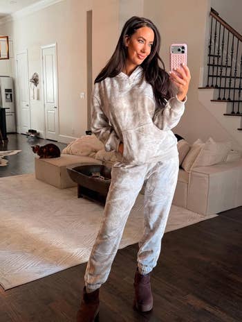 Promising review: "Absolutely love this lounge set! The colors are great and true to the photos. The material is thick, cozy, and keeps you warm. I own it in green and pink. The fit is oversize, but not overly baggy. Super comfortable!" —MichyLeeLB