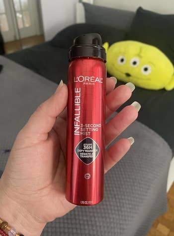 Promising review: "I’ve used this setting spray a few times now and I absolutely love it. It really helps my makeup stay in place all day without needing touch-ups, even in heat or humidity. The mist is super fine and dries quickly without feeling sticky or heavy on the skin. It sets everything beautifully without ruining your makeup or leaving any residue. I also love that it doesn’t have a strong scent. If you want your makeup to last and still feel comfortable, this is a great choice. Definitely a new favorite in my routine!" —YSantiago