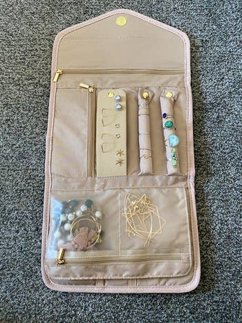 We hope you love our recommendations! While every product is independently chosen by our editors, BuzzFeed and our publishing partners may collect a share of sales or other compensation from the links on this page. You can read more about how our affiliate partnerships work in our Editorial Standards & Ethics Guide. "Too much stuff, not enough space" will not be in your vocabulary after seeing these genius products. Promising review: "I travel frequently and travel light. My luggage is usually limited to a backpack that slides under the airline seat. For a two-week European cruise, I added a carry-on rolling suitcase. I've used these packing cubes twice so far, and I am hooked. One cube holds everything (including clothing) I take on a three-night trip. The cube slides into my pack, saving me massive amounts of room, and everything is easy to find during travel and at the hotel. Taking out one cube and unzipping is much better than digging through a pack! I will never leave home without these!" —Gura Get a set of four packing cubes (and a laundry bag) from Amazon for $27.99 (available in 15 colors, sets of eight, and multi-packs). BuzzFeed Shopping writer Emma Lord says: "HELLO, I AM OBSESSED WITH THESE. Despite all the rave reviews, I was definitely skeptical of space-saving bags that didn't require a vacuum, and even as they were actively squishing my clothes into oblivion, I still couldn't quite believe it. I had easily two suitcases worth of clothes I wanted to pack for a three-week trip to London, and I managed to neatly pack the entirety of my wardrobe in one roller carry-on bag. Truly, all I had to do was put my clothes in the bag, push them to the bottom, and then sit on it to get the air out before sealing it up. I had tons of extra bags and make a habit of taking them with me in case other people joining me on trips need them to be able to pack souvenirs on the way home. I'm never taking a long trip without these again — these are worth every damn penny." Promising review: "I travel monthly for work, usually gone for 4–5 days. Before these, I would have to check a bag. Dress shirts and pants roll up nicely and stay wrinkle-free. It's tempting to want to over-stuff these, but if you're packing golf shirts or clothes with 'slippery' fabric, they slide out of the top of the bag as you get close to the end. The clips take a minute to get used to, but after a couple of times zipping up the bags, it's pretty easy." —Amazon Customer Get a set of eight from Amazon for $11.28. Promising review: "I love that this product is an all-in-one! It saves me so much space when I travel, and the products are high-quality too. The lightest brow pencil is still a little dark for blondes like me, but the other shades complement me perfectly. I like the lip liner the best; it easily elevates a simple lip look!" —Sam Get it from Amazon for $13.99+ (available in three colors). Subtl Beauty is a small business that specializes in vegan, cruelty-free beauty products, including compact, customizable beauty stacks. Promising review: "I absolutely love how compact this product is. I have been pleasantly surprised at how natural the makeup feels, and I love the natural look it provides. I originally purchased it for traveling, but have been using it daily and love it!" —Paula Bowie Get the Starter Stack from Subtl Beauty for $55 (originally $80; available in 19 tones), or customize your own stack starting at $5 per layer. Promising review: "My husband and I travel a lot and take a number of prescription drugs. It was always a hassle accessing our medication when needed, so I purchased this organizer to make things easier. I used a label maker and labeled each little compartment, and it has performed wonderfully. I highly recommend this organizer to anyone who travels and needs medications throughout the day." —Jacqueline Get a three-pack from Amazon for $5.99+ (available in five color sets and packs of two). Promising review: "Best jewelry travel pouch ever. Plenty of room for all my travel jewelry needs. Half the size of previous pouches I have tried and holds more than any of them." —T Rex Mom Get it from Amazon for $14.24+ (available in two sizes, six colors, and packs of two). Promising review: "I always have my Kindle Paperwhite with me when traveling or just sitting at the beach to read. Recently, we traveled to a tropical wedding destination. I was sitting by the pool reading when my daughter's boyfriend sat down with his book and said he was almost finished. He was complaining that he wanted to bring more, but they would be too heavy. I showed him my Kindle and said that I loaded five books into it for the trip. He was very interested and amazed after I let him play with it. So now, he's getting one for Christmas." —Steve M. Get it from Amazon for $159.99+ (available in three colors, with or without lock screen ads, and with or without three months of Kindle Unlimited). BuzzFeed Shopping editor Elizabeth Lilly is a big fan of these: "Each pack comes with three packets. And, because they *are* liquid, they'll easily slide into the side of your toiletries bag. I've packed these on international trips with much success! Promising review: "Taking these out of the country to wash under things is exactly the right size." —Laura Wilson Get nine packs from Amazon for $5.99 (available in scented and unscented, and four pack sizes). The "daily routine" set includes four medium and three small capsules as well as magnetic, interchangeable labels for shampoo, conditioner, body wash, moisturizer, cleanser, a pill icon, and a blank tile. They also offer skincare, bodycare, and haircare sets as well as extenders that increase the size of the capsule! And if you fall in love with these and *really* want to customize your collection, head to their site to build your own unique set. Cadence is an AAPI woman-owned small business that was founded by Steph Hon with the goal of eliminating single-use t
