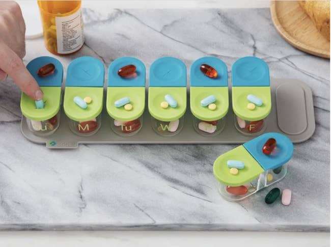 Promising review: "I love this med organizer. I can easily see my AM and PM meds and love how easy it is to pop the pills in the dispenser. These will make great gifts for some seniors I know." —Annie
