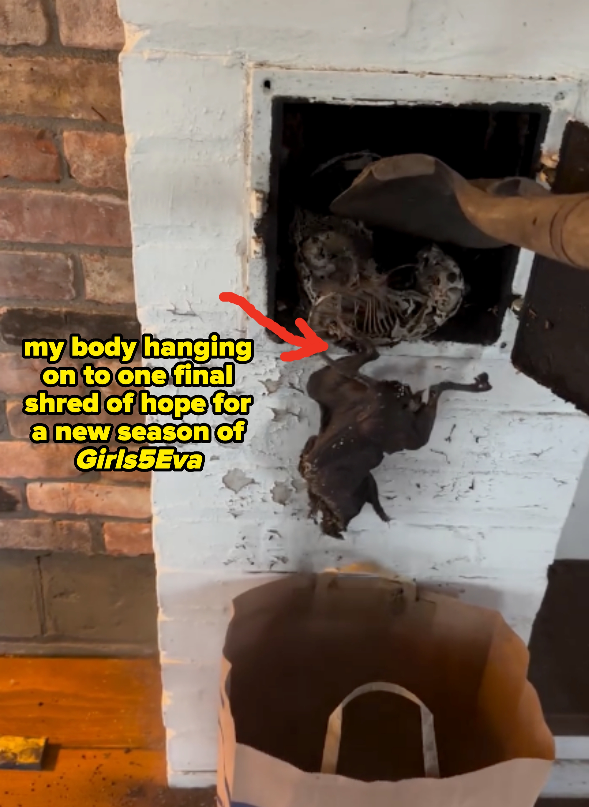 This was the most horrifying (and funniest) thing I've seen on the internet in months. I’m the Editorial Director at BuzzFeed — where I’ve reported on TV, film, and lifestyle trends (travel, fitness, and food) since 2013 — and I also post about the latest in pop culture news to my 850k+ followers on TikTok. You know and love Sara Bareilles. She's been nominated for four Emmys, nine Grammys (winning two!), and three Tonys. I have no doubt that she'll EGOT someday, but today, well, she may be having the worst day of her life. Let me explain. If you don't see ~it~ yet then don't worry because there are PLENTY more pictures below. Here's everything Busy said in the first IG story: "Wait. You guys, I don't know if you follow Sara Bareilles, but she's currently in her house upstate, removing several carcasses from some sort of hole in her wall, and it is so vile, and I'm laughing and screaming watching it. This is the worst HGTV show I've ever seen in my life. I don't know what to say, except 'oh my God, she's braver than I am.' I don't know what I would have done in this situation. And I'm just grateful that I've been having my phone on grayscale for a few weeks, which is where it's just in black and white, because I'm trying to, like, break a phone addiction, you know? And, um, and it's better for your brain to not see the colors because that's what, like, gives you the dopamine. It really sucks, but I'm just grateful for it in this moment 'cause this is the most horrifying thing I've ever seen in my life." Here's everything Busy said in the second IG story: "I'm not kidding. I'm so horrified. I don't know if I can go back and finish the stories of her taking these giant rodent carcasses out of her wall by herself with a shovel into, like, a Petco brown paper bag. She says, 'I know there must be a better way to do this.' 100-fucking-percent, yes. Like, you call a friend to come over and hold the bag with gloves on. You couldn't pay me enough fucking money. Like, this is— I've never in my life. Never in my life! It's horrifying. Horrifying. And I did have a rat die in my wall once. Everyone in New York, I think, has experienced this, and I hired a guy that came over with, like, a cadaver detector. He still couldn't even really find it. We just had to get, like, air purifiers for, like, two weeks."