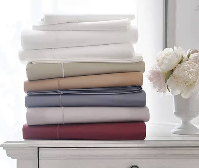 Available in five colors in queen, king and Cal king sizes, these sateen sheet sets are priced under $100, making them an absolute steal. The set includes a flat sheet, fitted sheet and two pillowcases.