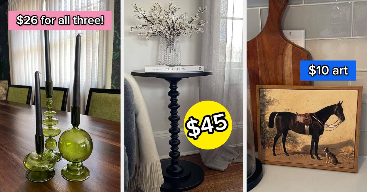 We hope you love our recommendations! While every product is independently chosen by our editors, BuzzFeed and our publishing partners may collect a share of sales or other compensation from the links on this page. You can read more about how our affiliate partnerships work in our Editorial Standards & Ethics Guide. "They’re a great price, super chic, and people are stunned when I say I got them from Amazon," —just one reviewer on their sub-$30 glass candlestick holders. Looking for affordable home decor ideas that'll level up your aesthetic? This roundup is packed with budget-friendly home upgrades — from peel-and-stick tiles to plug-in wall sconces, and cozy accents like jute rugs and chenille floor pillows. Whether you want a quick vibe shift or a subtle glow-up, these picks can help your home look way more styled with minimal effort. This is IP44 waterproof certified, meaning it can withstand splashes of water. DO NOT put this in the water with you (obviously!) or place it somewhere precarious where it can fall into the water or will get wet — but know that it'll be ok if splashed. Your nighttime shower mood lighting will be just as cozy with this on your bathroom counter or shelf. Safety first! Hear one TikToker's thoughts on the shower lamp. Promising review: "I bought this kind of as a joke for our shower, but it's the best thing I've purchased so far in 2025! It's easy to use, love the dimmer, and it creates a nice ambiance." —Holla Get it from Amazon for $33.99+ (available in six colors). Promising review: "The texture on this tray is really unique and playful. I have the yellow and love the way my silver rings stand out in them!" —mroman Get it from Anthropologie for $16+ (available in three sizes and colors). Promising review: "I hopped on the gold ornate mirror trend and spent a long time trying to find one within my budget. I was worried at first because there weren’t any reviews when I first bought this. It looked amazing online and was the perfect size, so I went ahead and got it. I am THRILLED with this purchase!!! One of the best things I’ve gotten from Amazon. It’s beautiful and exactly how it looks in the pics. It came four-ish days faster than estimated. It’s perfect for my makeup desk. If there were different sizes of the same mirror, I would buy all of them." —McKinlee Mayer Get it from Amazon for $82.99+ (available in six sizes and five finishes). Promising review: "Love this bench, matches perfectly with everything. Now I want it in brown too. 🤭" —Lisa Get it from Amazon for $159.99 (available in two finishes). The mold-resistant tiles are sold in 11.43 x 9-inch sheets, and each pack comes with five in total. The sheets are finished with self-adhesive so you can literally peel and stick them to any surface. They can also easily be cut to size since they're thin and lightweight. Removal is just as simple — peel them off, wipe the wall down, and you're back to square one. Promising review: "So easy to install and they look stunning. People are shocked when I tell them that these are peel-and-stick. I'm very impressed with the look. Makes our powder room look very modern." —BonStuch Get a pack from Amazon for $37.98+ (available in 11 styles). Promising review: "Omgoodness! I am totally blown away by this headboard! The quality and ease of installation were amazing! Velcro! That’s right, Velcro is holding this king-size headboard up! Damn! Why didn’t I think of that? Lol, anyway! I love the simplicity of it, and I didn’t have to get out any tools! And last but not least, the price is right!" —jill Get it from Amazon for $53.99+ (available in sizes Twin–King and in 11 colors). You can see how one TikTok user styled hers in this TikTok video by Miriam Gin. PS: They come from MaisoNovo — a small biz! Promising review: "I get compliments on these dispensers and they feel sturdy on the tile wall. Would buy again 5 out of 5!" —DCorb Get it from Amazon for $24.70+ (available in six different styles and quantities of one, two, or three). Natural Inspired Finds is a woman-owned small business based in London that makes unique paper lanterns. Promising review: "It is a wonderful product. It is exactly what I was looking for. I just love how it adds a peaceful, thoughtful, and natural vibe to our house. I recommend it with all my heart." —Élodie Boutin Get it from Natural Inspired Finds for $54.43+ (custom options available). Promising review: "This comes just as pictured and described. It is comfortable and looks luxurious. It's great for floor seating." —AKhan Get it from Amazon for $35.99+ (available in eight colors). Reviewers attached these in different ways, with some just using mounting tape in apartments for no damage to walls. Others installed them on doors and kitchen islands! Promising review: "I really wanted an accent wall but don’t have any tools to create my own frames from molding, so this was such an easy DIY solution! I used liquid nails only to adhere to the wall and had no issues." —Megan Get a single panel from Amazon starting at $19.16+ (available in sets and tons of sizes). Promising review: "Perfect for the area of my house I needed it for! The coloring is great, giving it the perfect vintage feel, very well done, great value for the cost too." —Brian Get it from Amazon for $8.99+ (available in five sizes and 37 styles). Promising review: "This table is fancy and elegant, the material is of excellent quality and extremely well finished! The color yellow is very beautiful and vibrant, a true yellow. I am very happy with the purchase." —Danielle Maia Get it from Amazon for $44.79+ (available in seven colors). Each kit comes with six pre-cut LED light strips (9.8 feet in total) and adhesive strips for mounting. The 17-key remote can control basic functions like turning the lights on/off, setting a timer, dimming the lights, etc. Plus, it works at distances up to 60 feet. Promising review: "Awesome pro