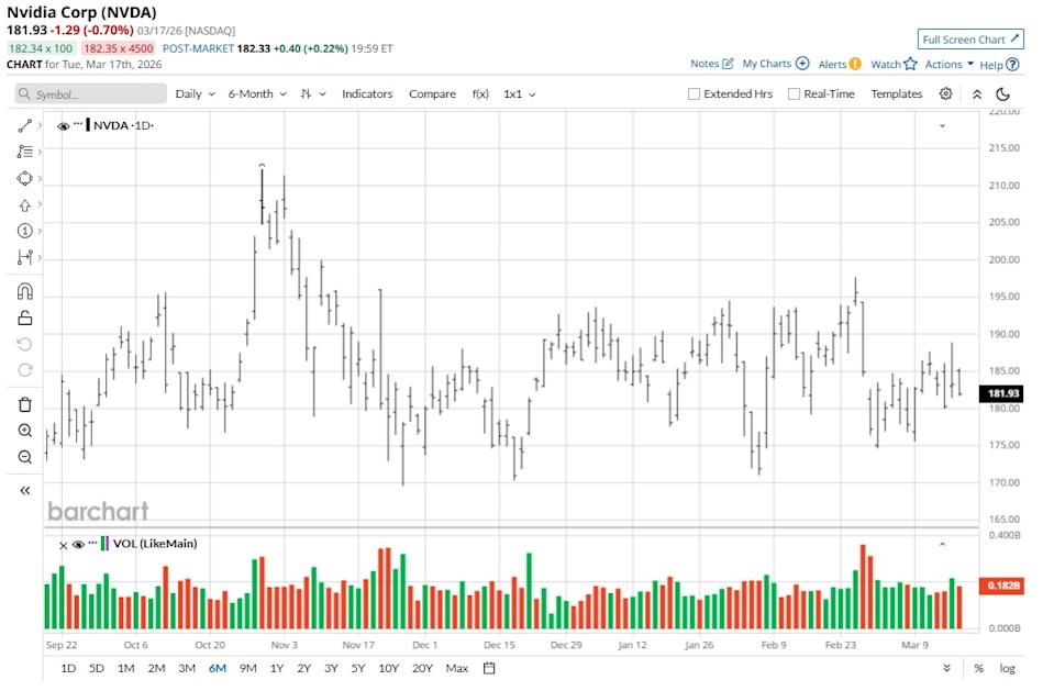 Nvidia (NVDA) has always been at the forefront of innovation. Since inception, the tech giant has invested $58.2 billion in research and development. As of fiscal 2025, the company also had 27,100 out of 36,000 total employees engaged in R&D. Therefore, unsurprisingly, Nvidia is not only strengthening its moat but also pushing new frontiers. At GTC 2026, Nvidia recently announced the Vera Rubin Space-1 chip system, which could potentially be used for orbital AI data centers. To simplify things, the current massive push for AI infrastructure also implies significant energy consumption and higher electricity costs. One potential solution to this problem is the creation of orbital data centers in space. As Meta Stock Dips Near $600 Levels Should You Buy or Stay on the Sidelines? CoreWeave Stock Forecast: Should You Buy, Sell, or Hold CRWV Stock? Massive Meta Platforms Layoffs Could Be Coming. Why Did META Stock Gain on the News? Get exclusive insights with the FREE Barchart Brief newsletter. Subscribe now for quick, incisive midday market analysis you won't find anywhere else. It’s worth noting that SpaceX is already planning orbital data centers. Elon Musk believes that “within 2 to 3 years, the lowest cost way to generate AI compute will be in space.” With SpaceX being among Nvidia’s largest customers, the Vera Rubin Space-1 chip could be a game changer. Headquartered in Santa Clara, California, Nvidia identifies itself as the pioneer in accelerated computing. With AI changing the technology landscape, Nvidia has positioned itself as a full-stack computing infrastructure company with capabilities for data center-scale offerings. Nvidia operates through two primary segments: Compute & Networking and Graphics. Some of the key markets that serve as growth drivers for the company include data centers, gaming, professional visualization, and automotive. For fiscal 2026, Nvidia reported robust revenue growth of 65% year-over-year (YOY) to $215.9 million. For the same period, operating cash flow was $102.7 billion. The strong growth momentum is likely to sustain in fiscal 2027, with Nvidia guiding for Q1 revenue of $78 billion and a gross margin of 75%. Amid healthy growth and continued innovation, NVDA stock has trended higher by 49% over the past 52 weeks. However, shares are down by less than 1% for the past six months and down by 5% year-to-date (YTD). This phase of consolidation seems like a good accumulation opportunity. In terms of new products, Nvidia recently launched the Vera CPU built for agentic AI. The Vera CPU is touted to deliver “twice the efficiency” and is 50% faster than traditional CPUs. With a release scheduled for the second half of 2026, it’s one of the growth drivers for Nvidia. Further, with the launch of OpenClaw, Nvidia is likely to make inroads beyond the hardware market. According to Kevin Xu of Interconnected Capital, Nvidia is positioning OpenClaw “as the next Windows” or “as the next Linux.” According to Nvidia CEO Jensen Huang, OpenClaw is “definitely the next ChatGPT.” With continued expansion of its addressable market and significant growth visibility from data centers, Nvidia is well positioned to create value on a sustained basis. Based on 49 analysts with coverage, NVDA stock is a consensus “Strong Buy.” While 44 analysts have a “Strong Buy” rating for Nvidia, three analysts have a “Moderate Buy” rating, one analyst has a “Hold” rating, and one has a “Strong Sell” rating. The mean price target of $266.59 implies potential upside of about 52% from here. Further, the most bullish price target of $360 suggests that NVDA stock could climb 105% from current levels. After Nvidia’s annual tech event, Bernstein maintained an “Outperform” rating on NVDA with a price target of $300. The bullish outlook is underscored by the view that Nvidia will continue to strengthen its position in AI inference. Further, the company has guided for a $1 trillion revenue opportunity through 2027 that includes only Blackwell, Rubin, and associated networking, implying that Nvidia's actual revenue potential is therefore higher. The icing on the cake? NVDA stock trades at a PEG ratio of 0.61, which is indicative of undervaluation considering the growth potential. On the date of publication, Faisal Humayun Khan did not have (either directly or indirectly) positions in any of the securities mentioned in this article. All information and data in this article is solely for informational purposes. This article was originally published on Barchart.com