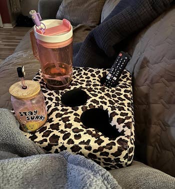 Promising review: "This thing is great! I’m home on maternity leave with my new baby and spend most of my time on the couch under a sleeping baby. This product makes it easy for me to keep my drinks, remote, etc, close by, even with dogs running around. It’s a little more expensive than I would have liked, but it works, and I love it, so money well spent!" —Amber