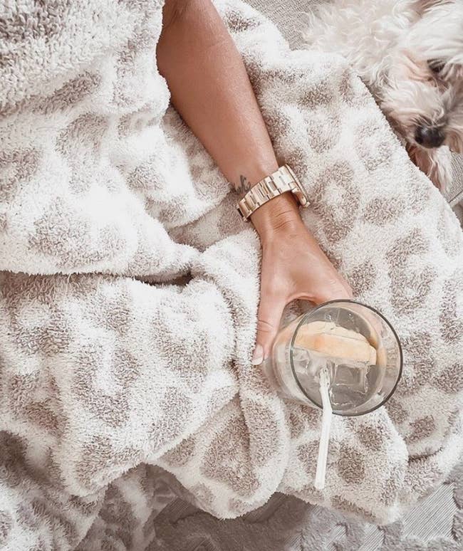 Promising review: "Chrissy Teigen tweeted that she loved this blanket and mentioned that it easily stretches over the shoulders and feet. Let me tell you, it does. I'm only 5'5" so it does the trick. This blanket makes me look forward to going to sleep. It's not too warm yet you feel wrapped up in a cloud. Totally worth the money. I want another one." —M