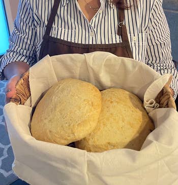Promising review: "This is a beautiful and functional bread basket and warming plate combo. I absolutely love it. We host a lot, and this is a must-have for keeping bread, tortillas, or any other pastries warm. It's the perfect size, looks great, is easy to use, and actually works. It also makes a great gift." —Marge P.