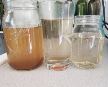 Promising reviews: "OK, so these cleaner pods are awesome! I didn't know how gross our Keurig was until today. The big Mason jar on the left is when I actually ran the cleaner through plus one rinse cycle. The middle one is another rinse cycle, and the last one, on the right, is the last one I did. So, yes, I would suggest running two or three rinse cycles instead of the recommended one. But it's still an awesome product for the price! I have a 2.0, and I had no issues." —Mads0421