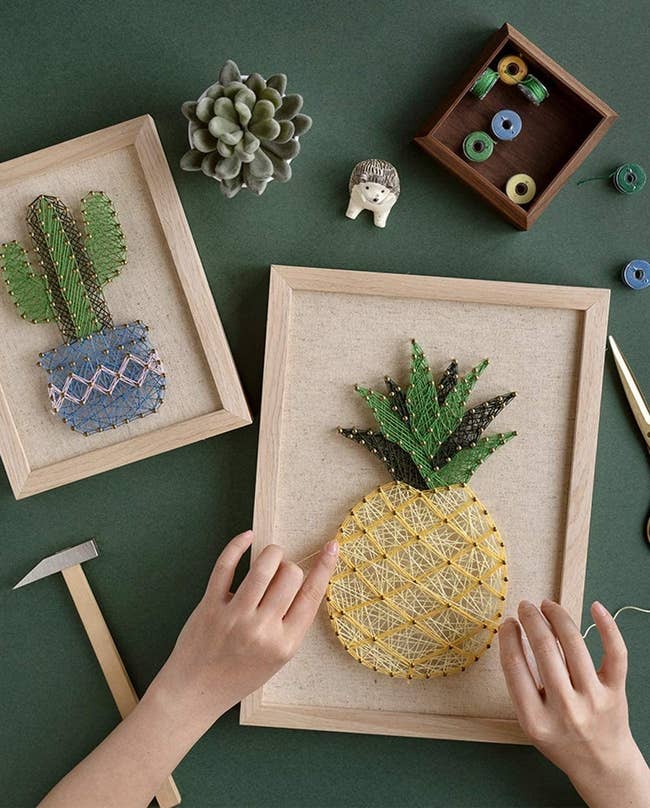 The kit comes with a crafting board, small hammer, a holder, nails, glue, screws, cotton string, a frame, a pattern, and a detailed instruction manual, so there's no need to buy other supplies.