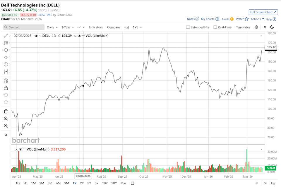 Super Micro Computer’s (SMCI) stock is collapsing, with shares plunging 27% in Thursday morning trading after federal prosecutors charged co-founder Yih-Shyan “Wally” Liaw, Ruei-Tsang “Steven” Chang, and Ting-Wei “Willy” Sun with operating a $2.5 billion smuggling scheme involving banned AI GPUs and servers to China. The U.S. indictment alleges the group violated export controls by routing high-performance hardware (believed to be Nvidia (NVDA) GPUs) through Southeast Asian shell companies. This bombshell lands atop SMCI’s already checkered past, including a 2020 SEC settlement for widespread accounting violations involving premature revenue recognition and understated expenses. Exxon vs. Chevron: Which Energy Giant Will Pay You for Generations as Oil Prices Surge? 2 Top Defense Stocks to Buy Now as the Military Works to Reopen the Strait of Hormuz Elon Musk Is Still a ‘Huge Admirer’ of Jensen Huang and Plans to Keep Buying Nvidia Chips. Does That Make NVDA Stock a Buy on the Dip? Our exclusive Barchart Brief newsletter is your FREE midday guide to what's moving stocks, sectors, and investor sentiment - delivered right when you need the info most. Subscribe today! Rebuilding trust may prove nearly impossible. The big question, though, is whether this stunning implosion positions Dell Technologies (DELL) as the clearest winner in the exploding AI server market? Prosecutors say SMCI's scheme ran from 2024 into 2025. Liaw, then senior vice president of business development and still a board member, along with Chang (SMCI’s Taiwan general manager) and contractor Sun, allegedly instructed a Southeast Asian company to place massive orders for SMCI servers. Those units which contained restricted chips were repackaged, relabeled with dummy machines, and diverted to China. Tactics reportedly included hair dryers to erase serial numbers and staged inspections to fool authorities. At least $510 million worth of servers reached Chinese destinations, part of a broader $2.5 billion effort. SMCI itself is not charged, but it placed the individuals on leave and cut ties with the contractor. The scandal revives memories of SMCI’s prior accounting troubles, amplifying doubts about governance and long-term viability. While the smuggling allegations grab the headlines, the subtext points to billions in potential business shifting toward Dell. Once a niche player overshadowed by SMCI’s hypergrowth, Dell has rapidly become one of the AI server market’s biggest competitors. Leveraging its global supply chain, enterprise relationships, and diversified portfolio, Dell has captured share from hyperscalers, sovereign AI projects, and neoclouds such as CoreWeave (CRWV), Tesla (TSLA), and xAI. In its third fiscal quarter of 2026, Dell shipped $5.6 billion in AI-optimized servers and built an $18.4 billion backlog. Management now targets roughly $25 billion in AI server shipments for full-year fiscal 2026 translating into triple-digit growth, as well as guiding for $50 billion in fiscal 2027. This momentum reflects Dell’s ability to scale production while maintaining stronger margins than pure-play rivals. SMCI’s own results tell a story of explosive but fragile growth. For the second fiscal quarter of 2026, revenue hit $12.7 billion, up 123% year-over-year (YOY) with pre-scandal guidance for at least $40 billion for the full year with AI platforms driving the surge. Yet customers may now hesitate to associate with a company facing export-control charges and a history of accounting scrutiny. Reputation risk is real; enterprises and cloud providers avoid even the appearance of ties to sanctioned shipments. Many may very well pivot to Dell as the next major player. Its AI business has been compounding rapidly, with thousands of customers and a broad ecosystem that reduces single-point vulnerabilities. Prior to the implosion, analysts consistently rated Dell a "Moderate Buy," citing AI server momentum, a $13 billion-plus Q1 shipment runway, and overall revenue diversification beyond servers. Consensus mean price target hovers at $168.62, with optimism around sustainable growth and share gains. Early market reaction post-news shows Dell shares rising 5% while SMCI craters, suggesting investors view the scandal as a competitive tailwind. Fresh commentary is still emerging, but the pattern aligns with prior observations that Dell and peers stand to benefit from any SMCI disruption. It is deeply unfortunate for SMCI investors who have watched billions in market value evaporate through no fault of their own. At the same time, the scandal carves out a rare opening for Dell to accelerate market share gains, scale its AI infrastructure leadership, and solidify its position as the go-to provider in this high-growth sector. On the date of publication, Rich Duprey did not have (either directly or indirectly) positions in any of the securities mentioned in this article. All information and data in this article is solely for informational purposes. This article was originally published on Barchart.com