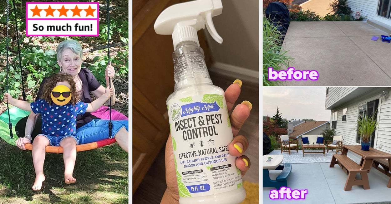 We hope you love our recommendations! While every product is independently chosen by our editors, BuzzFeed and our publishing partners may collect a share of sales or other compensation from the links on this page. You can read more about how our affiliate partnerships work in our Editorial Standards & Ethics Guide. Promising review: "Needed to clean and reseal my brick patio. The washer was not a disappointment. I was so impressed with the quality of the washer, assembling was easy except the gun holder plastic was kind of hard to get clipped up. Immediately after receiving I put it to work and was running it all day to complete my patio cleaning. It is really great washer, the hose is sturdy, different nozzles for different types of cleaning were great. I even cleaned the plastic siding in the backyard; the green stuff from the walls came out without any soaps. I really like this power washer — as a matter of fact, it became my favorite tool of all." —Linas Salavejus Get it from Amazon for $169 (available in two other versions). One 5.6-pound bag provides about 615 sq. ft. of new lawn coverage, or up to 1,845 sq. ft. if you're overseeding. Promising reviews: "Before and after [above] of using the Rapid Grass + extra fertilizer for lawn bald spots from Sunday. This before and after is only 10 days of growth. I also applied a thin layer of top soil to let the grass root more." —Chandler Varonfakis "Have a dog who destroys the spot she likes to go. We rotate and use this and the grass comes back great and full." —Lindsey Get it from Amazon for $28.99+ (available in two sizes). Promising review: "It is early July, and I could not be more pleased with this seed mixture. Almost every day since April, I have had new surprises in my garden. I have enjoyed alyssum, Chinese forget-me-not, zinnias, cosmos, and marigolds. I am beginning to see more forget-me-nots, poppies, pineapple sage, and Armeria. I am a beekeeper and, hence, was trying to plant some flowers the bees would like. I have an unbelievable number of pollinators busy among the flowers all day long. Today, I saw a hummingbird!! I am hoping to have these flowers self-seed and to have even more lovelies next year!" —Bio Teacher Get it from Amazon for $16.99+ (available in two sizes and as annuals or perennials). Promising reviews: "Well-made bee house with a sturdy hanger that has made an attractive addition to my garden as well as a home to the mason bees that are so important to my veggie/flowers. I plan to give one to each of my gardening friends for Christmas!" —P.A. Nelson "Great way to save the world one backyard at a time! My grandkids and my son loved it! Super good for teaching kids to know that we need ALL bees not just honey bees." —Lucy Copper Hummingbird is a small biz based in Tucson, Arizona. Nancy Biggins, the founder, worked as a zookeeper in the hummingbird aviary at the Arizona-Sonora Desert Museum, so these feeders are the real deal. Promising review: "This is beautiful. I ordered two so I could hang one off the other. Within a day I had birds flocking to it. The copper is so pretty and looks great. Highly recommended." —Jennifer Serafin Get it from Copper Hummingbird on Etsy for $29. Promising review: "I ordered the raised flower bed because I just couldn't prep my hard ground for a garden. It arrived a week sooner than it said it would be here, and it took me about 20 minutes to put it together. It saved me hours of unnecessary work, and my garden looks great." —Fluffy Jones Get it from Amazon for $25.99+ (available in three sizes, five colors, and packs of one or two). Promising review: "Love this product for so many reasons. The raised design keeps our dogs and nature friends out of the garden. It's great for elderly and people with back or knee problems. You can still garden. Easy to put together. We got a 4-foot garden. Possibly overloaded it, but we have four tomato plants, three eggplants, three green peppers, three red peppers, and three strawberries. Highly recommend." —Cybil Get it from Amazon for $74.99+ (available in three sizes and seven colors). Promising review: "Claiming back my backyard!!! I'm ypically horrible at leaving reviews, but this one deserved it!! I couldn't enjoy the beautiful Arizona evenings due to the amount of mosquitoes and bugs that would attack me. This thing is a life saver!! I can enjoy my backyard again. Not ONE bite from those suckers. The sound of them crackling is music to my ears!!!" —Graselda Khouri Promising review: "My terrace is on full view from neighboring buildings and gets direct sunlight from mid-day until sunset so I wanted some privacy and some shade and this delivers. I didn’t want complete blockage so I widened out mines to allow some light to come through the leaves but not enough to burn me if the sun is hitting any exposed areas. They were easy to install with the provided zip ties and look even better at night with my lights on." —Veronica "This is one of the best solutions to cover our ugly chain link fence!!! It was very very easy to install. It took me 1 hour from unpacking to install total 14 panels all by myself. It looks very natural (doesn't look fake to my eyes unless you go closer)." —eva1246 Promising review: "This product is the bomb, so much so we purchased a second one... Had outdoor game day with our children and this kept everyone outdoors. Easy access to beverages for all ages. Would definitely recommend to any outdoor party goers." —Leslie A. McClendon Get it from Amazon for $66.82 (available in brown or grey). Promising review: "I applied this product on an uncovered deck, which takes a beating from the sun and rain in the summertime and snow sits on the deck in the wintertime. I've tried several other wood sealers but nothing we have used holds up as well as this product. When it rains you can watch the water bead up and run off so you know that this product is working. I apply this product every summer to my