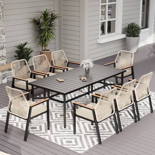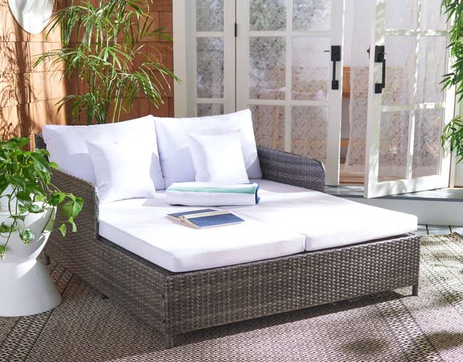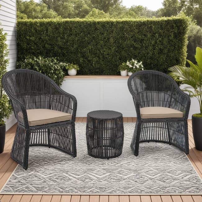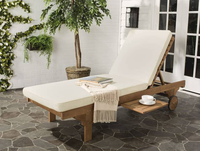 Promising review: “Very nice sturdy lounges with thick cushion that keeps its shape after seating. My husband put it together without my help. We got 2 of these and they look very nice next to each other. Love the trays underneath as they come so in handy, eliminating the need for other little tables. We have them under patio shade and we live in California, not sure how they would do in full sun. We have them covered in nice pocket beach towels though! We would definitely recommend these lounges!” —Sandina