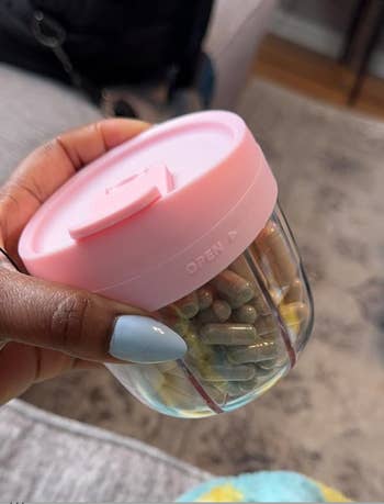 Promising review: "This is the best pill container I have found. It holds a month’s worth of pills in each compartment and is compact and easy to store and travel with. It is very sturdy and I don’t have to worry about the cap opening accidentally. The enclosed labels are a bonus, and the see-through exterior makes it easy to see how many pills are left. I keep it on my nightstand and it doesn’t take a lot of space." —TA