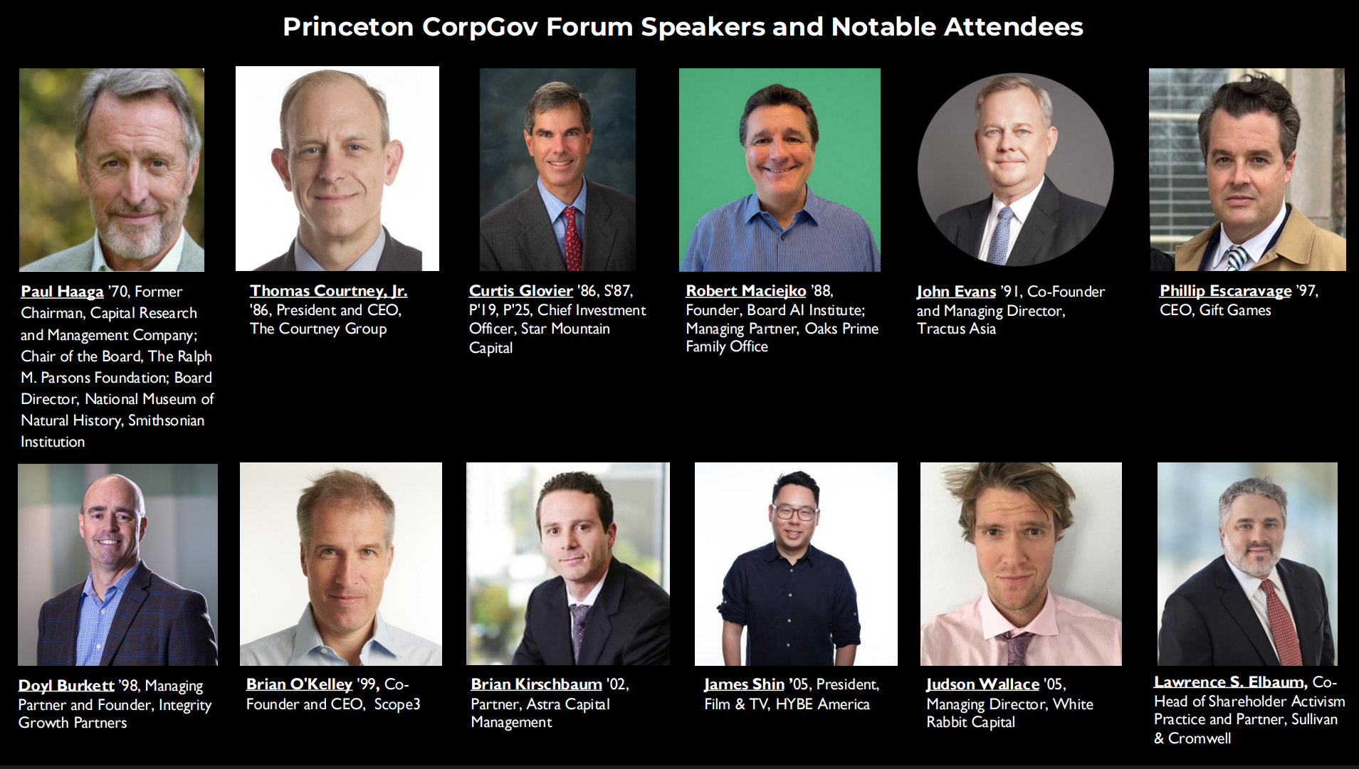2nd Princeton CorpGov Forum Preliminary Speakers for May 21