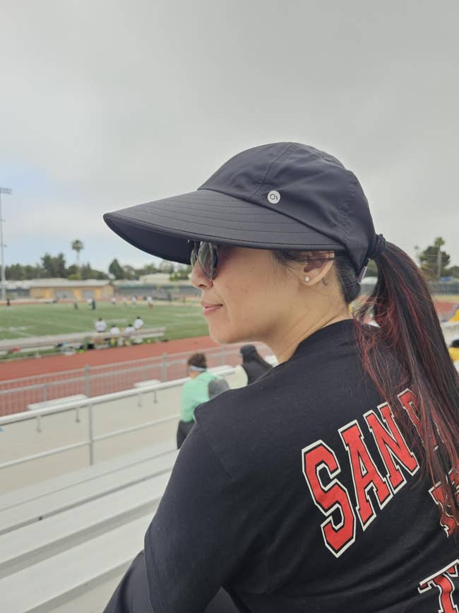 Promising review: "I purchased this hat for the beach to cover my face and ears. It did the job and was way cuter than I thought! If you’re looking for a hat for the pool, beach, or a sports mom, this will be great!" —Matthew & Brittney Odom