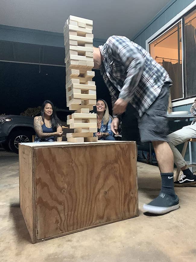 Promising review: "I love this oversized yard game of dice because you can adapt it to many other games that use dice. The BEST part of this product is its quality. The solid wood bucket and dice are painted a beautiful deep amber color and treated to withstand all kinds of weather, something you need for a yard game to last! The dice have rounded corners, which makes them easier to roll, and they come with up to 10 games laminated for protection. This is going to last through many seasons of fun! Don’t hesitate to purchase!" —Gifted Teacher 305