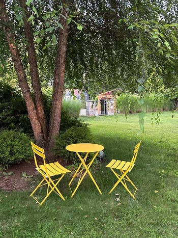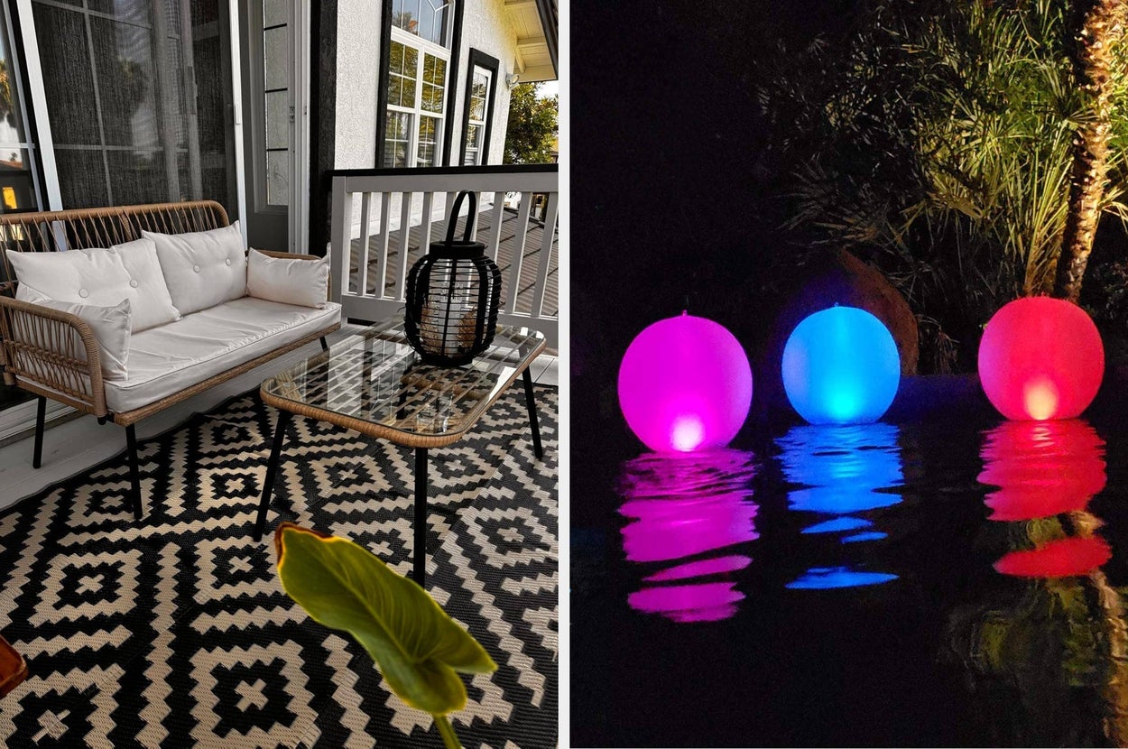 We hope you love our recommendations! While every product is independently chosen by our editors, BuzzFeed and our publishing partners may collect a share of sales or other compensation from the links on this page. You can read more about how our affiliate partnerships work in our Editorial Standards & Ethics Guide. From solar-powered string lights to colorful bistro sets, there's something for everyone on this list. Hauteloom is a small business in Georgia that sells rugs for the home. Promising review: "Delivered exactly as described. This is a really beautiful outdoor rug that adds coziness and pop to my deck. I put heavy items around the perimeter of the rug for a day to help flatten the edges. Great price for a great quality rug." —Amazon Customer Get it from Amazon for $42.64+ (available in nine sizes and three colors). Promising review: "I have two strings of this for my rooftop. They work so well and are so lovely. The dimming option is perfect, as these can be real bright." —Cinema4 Get it from Amazon for $32.99+ (available in two lengths). Promising review: "I love this loveseat ... when my cat is not hoarding it 😩 I spend so much time sitting longways on it, reading books. It’s lightweight but sturdy — I weigh over 200 pounds and feel supported while stretched out on it. It was also super easy to assemble. I normally hire someone to assemble anything that comes in pieces, but I was able to tackle this alone in about 45 minutes." —Brittney-Elizabeth Williams Promising review: "Its sturdy construction and classic design make it a standout piece for any patio. The robust cast-iron and steel frame ensure longevity, while the generous size accommodates comfortable seating. Elevate your outdoor space with this timeless and reliable garden bench." —Zhang_Shawn Get it from Amazon for $129.99+ (available in four styles and colors). Promising review: "These are great lights, we use them in our front and backyard. They are long lasting and create a resort-like appearance." —Michele Get it from Amazon for $35.69+ (available in three light colors and packs of four or eight). Promising review: "Scotts EZ Seed Patch and Repair Sun and Shade for Grass is truly a lifesaver for my lawn! I had numerous dead spots caused by my dogs' urine, and I needed a solution fast. After applying this magic dust as directed, followed by watering, I was amazed by the results. The dead patches transformed into lush, green grass in no time! This product definitely lives up to its promises and works wonders for repairing damaged areas on the lawn. Just be sure to follow the directions closely for best results. I highly recommend Scotts EZ Seed Patch and Repair Sun and Shade for anyone looking to revitalize their lawn effortlessly." —MJ Promising review: "Perfect size for our quaint balcony space in our condo building. The vibrant chartreuse color couples perfectly with our retro robin egg door. Lightweight, already assembled, and super easy to clean. The price makes this set a no-brainer. (It's cheaper than Target and CB2, but it is equal in quality.) Awesome summer buy." —Nouvelle Mere Get the set from Amazon for $94.99+ (available in six colors). Promising review: "This patio furniture is great for the price. One of the better known brands would sell a set like this for about $2,500–$3,000. It took a long time to put together by myself, but it was well worth the effort. My sister is on the market for patio furniture and I recommended this set to her." —Ant Rico Get it from Amazon for $799+ (available in two colors and with or without arms on the side chairs). There is also a matching curved walkway, if you need one! Promising review: "I went back and forth deciding whether I wanted to buy this. I was going to build my own walkway, but the labor involved and the price were more than I wanted to pay. So, this option looked appealing and some of the reviews were not positive. But, I absolutely love this walkway, and I’ve had it for well over a month now. It still looks like I just purchased it. I live in Florida so the weather is very harsh with heavy rains and extreme heat. This walkway has held up fine." —Jntqnn Promising review: "Lovely colorful flower pots. Perfect size to hold a single flower, and they add such a nice pop of color to my yard. Very easy to hang up, no hardware required! I’m getting a lot of compliments on them. I bought several sets and planted bright flowers in them. I have them lining the inside of my yard and on the front of the house. They add a lot of cheer and homeyness for a simple and cheap project." —Maegan Get a 10-pack from Amazon for $18.99+ (available in multicolor, black, or white and also in a larger size). Pick up a sturdy rust-resistant curtain rod while you're at it! Promising review: "These curtains are AMAZING! Beautiful and elegant. Hangs beautiful, very light blocking, keeps rain out of our Tiki bar, we can sit out there in the rain, and keeps the heat in on a cool fall evening when we have the fireplace on!" —Sara Bushendorf Get it from Amazon for $16.95+ (available in 10 sizes and 13 colors). Promising review: "We love this lounge chair!!! The price was fabulous!! (And just a note... If you take care of your things — i.e. cover up the swing with a tarp and bring the cushions in when not using it — It will stay like new. Sun and rain can age anything! Easy-peasy!!) This lounge swing is so comfortable and made very well!! It only took my hubby and I 25–30 minutes to put together. Take my word for it... you are not going to find a nicer lounge swing at this price!!" —Marash Get it from Amazon for $199.99 (available in 16 colors). Each light cycles through red, blue, white, and green. Promising review: "My pool is so old school and boring that I bought these to liven it up, and what a difference!! My pool went from 'meh' to WOW! The balls are easily inflated by mouth like a beach ball. Once inflated, a few hours in the sun, they ar