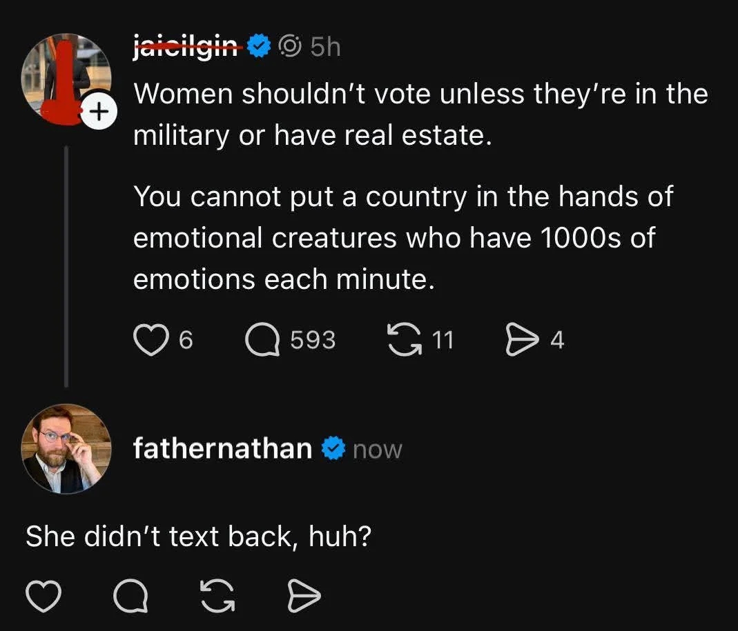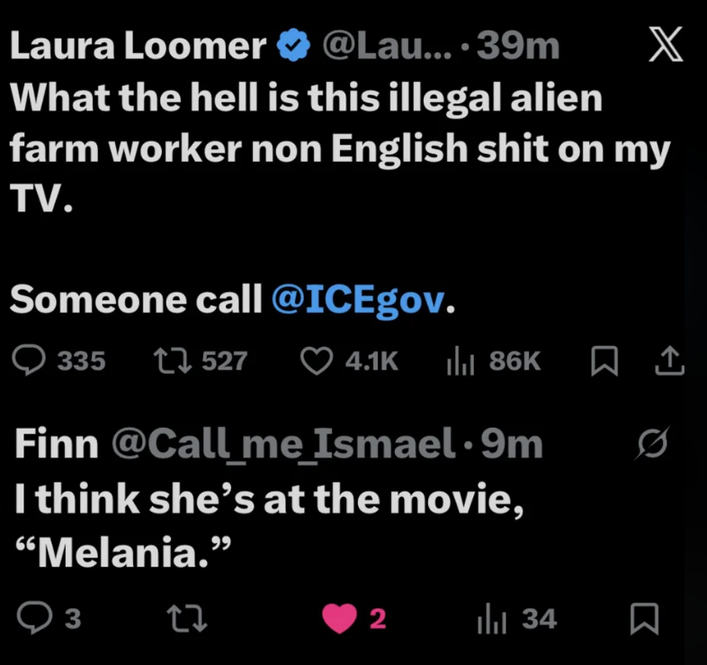 "If the halftime show wasn't 'white enough' for you, go read the Epstein files; it's all in English and full of white people." I'm a Senior Staff Writer based in New York City, where I've been covering classic BuzzFeed-style content since 2020. To another user who asked if she was serious, Ariel replied, "YES." @3YearLetterman clarified his tweet, though I don't know if he was just trolling, as some followers indicated he was "baiting": 3. America is the birthplace of the English language 4. The English language was the first written language Hence, the Bible necessarily was written in English and later translated into dead languages like Greek." @LeftyCrypto replied to Gebo with a photo of him in his profile picture, and later reposted the same tweet again (she also reposted a bunch of replies supporting her tweet). This is a reply to something Mike Johnson said irl, not online, but I'm still including it as the reply was online! Van Swol also tweeted, "Call me whatever you want… …but wanting the Super Bowl Halftime show to be in English is absolutely not racist." While it doesn't look like Chris replied to this specific tweet, he replied to another user who brought up Trump speaking at Charlie Kirk's memorial with, "And Charlie was taken out because of Politics. Did you forget that? Take a seat." He also tweeted, "To those trying to compare Trump bringing up politics at Charlie’s funeral to Biden and Obama bringing them up at Reverend Jesse Jackson’s funeral. Charlie was taken out because of politics and Jesse passed away from a battle with PSP. Let’s not compare the two. Next." It doesn't look like Lahren addressed this reply. Her tweet, referenced above, is still up. If you can't read the comments here, they say (with typos corrected): Right here is the display of the lack of intelligence in the liberal community. What I read here is a man that completely understands the complexities of sending people to Mars. Sending people to Mars is a complicated and very long journey. Through establishing a jump point on the moon, you can more efficiently send people and equipment to the Red Planet. It's logistics: less money and fuel required to send larger craft from the moon than Earth, so yes, sending and building an outpost on Mars has to include the moon. Thank you once again for reminding us how dumb you all are. Thanks for sharing your expertise! Where did you get your degree? I earned my Bachelor's in Aerospace Engineering and my Master's in Space Systems Engineering from the University of Michigan, after which I was recruited and hired by NASA's Jet Propulsion Lab to design and develop Earth-observing satellite missions. I also served as Science Investigator for a team-developed 500-page Mars Sample Return mission design (with lots of detailed calculations for EXACTLY how to get to Mars, using real math and science) in conjunction with JPL while still in college. Which Mars mission designs did you work on? You've written of being called to be a spiritual teacher, [name redacted]. It's disappointing to see someone who speaks so much of Christ's love writing with such unfounded vitriol and bitterness. Especially when you really don't know anything about the woman you're writing to. I may be a lot of things, but, being a calculus genius with some of the best education in the world, I know that unintelligent (or, as you call it, "dumb") is not one of them. Wishing you the best despite this very unfortunate comment. P.S. Sending a mission to Mars absolutely does NOT require developing an outpost on the moon. A mission to Mars and one to the moon require vastly different trajectories. I could show you if you'd like, but it would mean you'd have to brush up on your calculus. We have completed several robotic missions to Mars already, which were developed by JPL, where I was employed. If Trump is referring to manned missions including moon outposts as part of their design, as you imply (I think you are correct that that must be what he was TRYING to say), he MAY need to brush up on his communication and logic skills. Flynn Jr. replied, "You poor thing. I almost forgot how weak you beta male Hollywood actors are. Can’t even handle a meme."