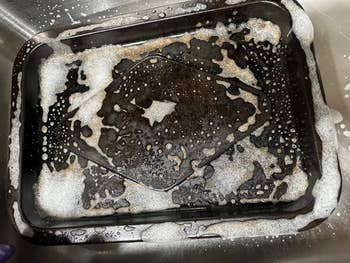 I live in an apartment without a dishwasher, and I honestly use that as an excuse to order takeout food instead of cooking. But, as soon as I got my hands on a bottle of this stuff (regular Dawn is my go-to dish soap, BTW), I put it to use on both a saucepan I used to make homemade enchilada sauce *and* the casserole dish I baked those enchiladas, which had a ton of caked-on food. It really does work like I say it does! Like, scary well.