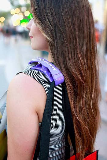 Promising review: "TikTok made me buy it. This is great when you have a few bags and a box — for example, if you balance the bags, you can throw it over your shoulder and walk inside and have two free hands to carry the box, which is great. Product seems well built, and is comfortable on your shoulder or hand because of the padding." —Hung