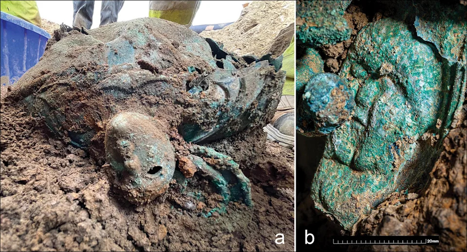 A metal detectorist found the hoards in 2021 near the village of Melsonby in Yorkshire and alerted archaeologists. Excavators discovered two separate deposits with a total of more than 950 artifacts, including iron "tires" for wooden wheels, a cauldron, an ornate wine-mixing bowl and ceremonial spearheads.
