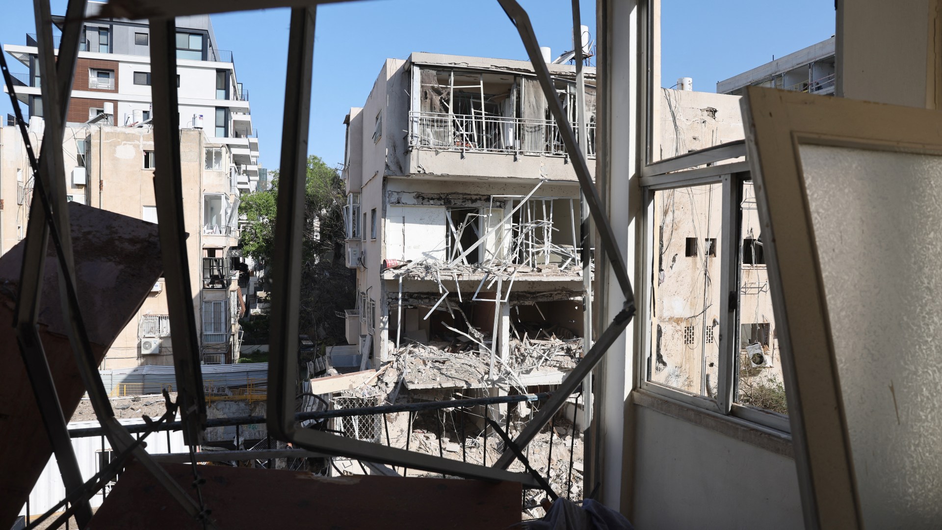Israel’s National Fire and Rescue Authority said the search was on for people trapped in one building in Tel Aviv, adding that civilians were found in a shelter in another damaged building.