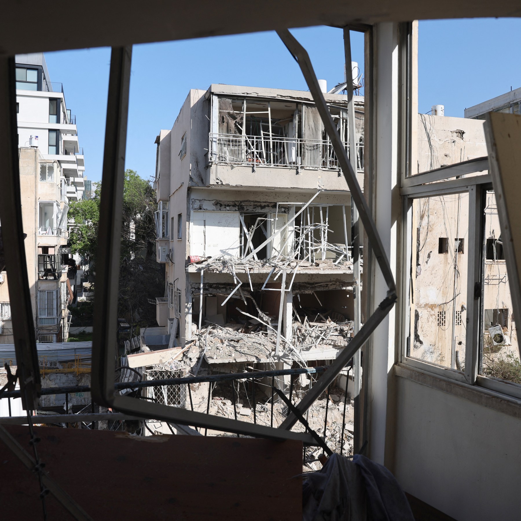 The missiles triggered air raid sirens in Israel on Tuesday, including in Tel Aviv, where gaping holes were torn through a multistorey apartment building. It was not immediately clear whether the damage was caused by a direct hit or debris from an interception.