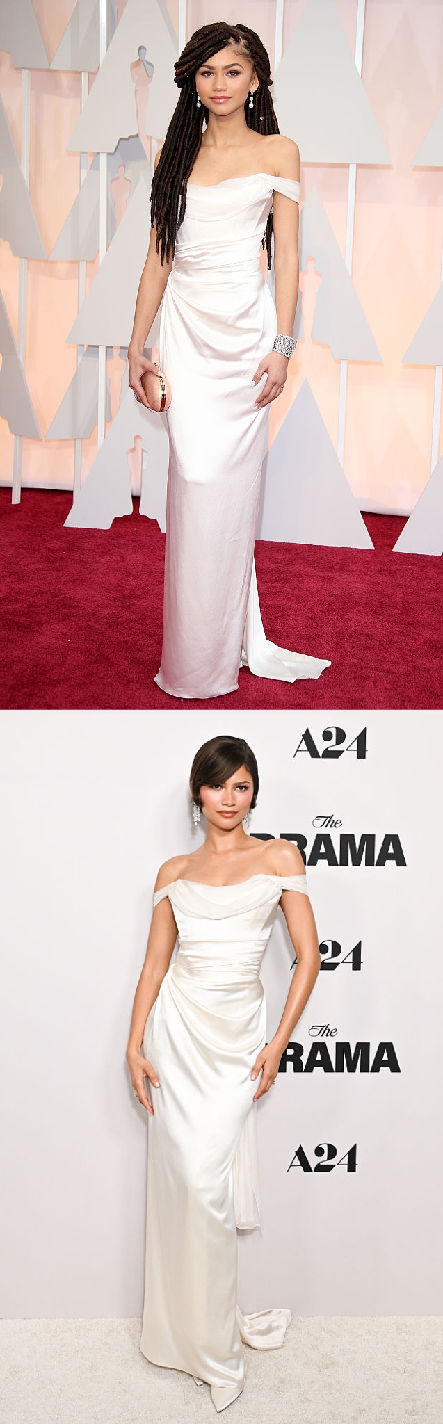 Kate Winslet said, "I don't like having to squeeze my hot-and-bothered mum-on-the-school-run body randomly into a red carpet dress that I'm never going to wear again. … I've already decided I'm doing repeat dresses. Everything will have to be let out, but whatever." As a staff writer at BuzzFeed, I write about all things celeb and pop culture. At the time, her locs — and the eloquent way she critiqued cruel comments about the hairstyle — made headlines. Fashion Police host Giuliana Rancic said, "I feel like she smells like patchouli oil...maybe weed." On Twitter, Zendaya said, "There is a fine line between what is funny and disrespectful. Someone said something about my hair at the Oscars that left me in awe. Not because I was relishing in rave outfit reviews but because I was hit with ignorant slurs and pure disrespect. To say that an 18-year-old young woman with locs must smell of patchouli oil or 'weed' is not only a large stereotype but outrageously offensive. I don't usually feel the need to respond to negative things, but certain remarks cannot go unchecked... I suggest some people should listen to India Arie's 'I Am Not My Hair' and contemplate a little before opening your mouth so quickly to judge." Giuliana made a public apology, telling E!, "I'd really like to address something that is weighing very heavy on my heart. Something I said last night did cross the line. I want to say to Zendaya and anyone else out there that I have hurt that I am so, so sincerely sorry... This incident has taught me to be a lot more aware of clichés and stereotypes, how much damage they can do." In another Instagram post, Elizabeth said, "India has been a pivotal part of my life for over 20 years and I cherish every moment in this magnificent country 🇮🇳 What a magical first night back in paradise, reuniting with some of my favourite people on the planet ♥️ Wearing a @versace dress from my archive which I last wore 27 years ago to the 1999 Met Gala 😳 @donatella_versace 💋." The same team worked on her dress for the ceremony. Joe Big Mountain and his wife, Sunshine, told Gucci, "For the dresses, we utilized a couple different styles of quillwork, one being zigzag stitch and one being a wrap. These techniques are passed down through family and certain people in the community. To have Lily choose to wear our work and to be able to partner with Gucci and Sabato is just so near and dear, not only to our family and our hearts but to our people as a whole." Both gowns were displayed at the Smithsonian's National Museum of the American Indian. On Instagram, Halle said, "Not only will this historic @eliesaabworld gown remain in the expert care of the museum’s curators and conservators, but it will also be accessible to generations of people for whom the dress also holds meaning and forever be a reminder that all things are possible. Thank you @academymuseum!" Her stylist, Elizabeth Stewart, added, "We couldn't see any reason not to re-wear a dress we love so much and so many reasons to re-wear a dress. It's not just couture gowns that take hundreds of hours to make but all clothes that are filling landfills. We need to get the word out to get rid of this ridiculous notion that dresses cannot be worn twice! Beautiful clothes should last a lifetime."