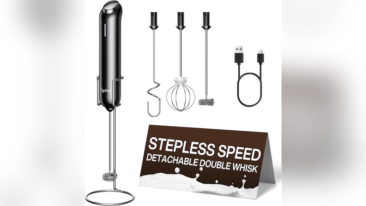 You don’t need a full coffee setup to get cafe-style drinks at home. This handheld frother has variable speed control and a single-button design for simple use. It quickly whisks milk into rich foam, is rechargeable and comes with three attachments and a storage stand.
