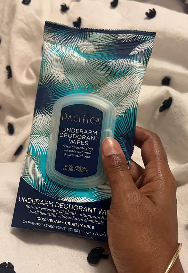 Promising review: "I really love these wipes, I’m a hairstylist, so there are times when I’m dripping sweat from running around or blow drying, and it’s so nice to be able to use these and then reapply deodorant, and I’m back to being freshened up! The wipes themselves are soft and thick, the perfect combo to scrub those armpits! The size of the actual wipe is great, too! One wipe is plenty for both armpits! Definitely would recommend 10/10 for a nice quick freshen-up or on the rare occasion you don’t have time to shower!" —Julia