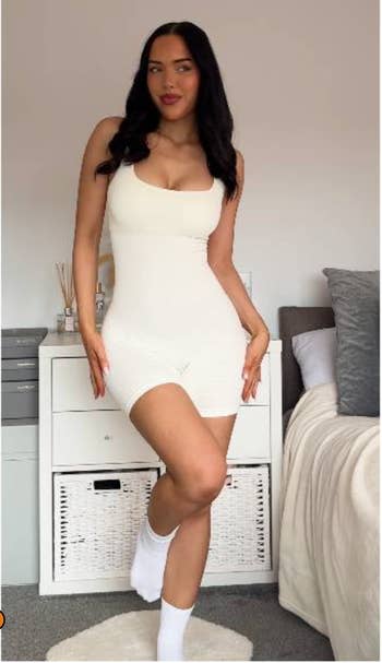 Promising review: "I have the Skims bodycon as well, and this is a great alternative! The Skims dress is ribbed, and the fabric is thinner and softer, but I don’t think that the Skims dress quality increases proportionally with the higher price point. If I were to purchase another bodycon dress, it would hands down be this one. It hugs my figure beautifully and can be layered and styled for all seasons. It’s one of the most versatile pieces in my wardrobe!" —Makayla Curtis