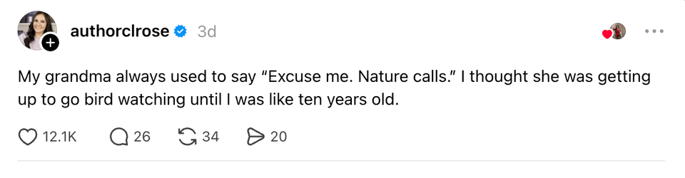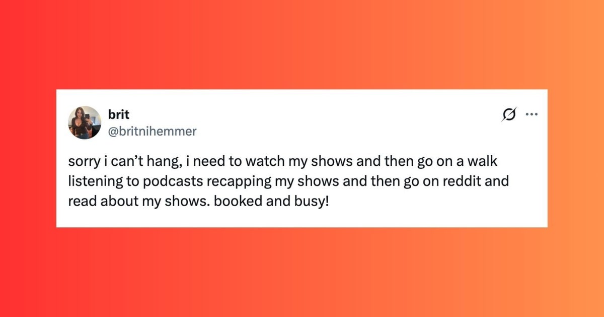 The ladies of the internet never fail to brighten our day with their brilliant and succinct wit. Each week, HuffPost Women rounds up their hilarious musings. Scroll through this week’s great tweets, threads and other posts from women, and then visit our “Funniest Tweets From Women” page for past roundups. Sign up for our Funniest Tweets of the Week newsletter here. the orchestra could overpower the conductor if they really wanted to. it’s fear that holds them back My boyfriend washed dishes and I haven’t said anything about it. He’s said “wow this kitchen looks spotless” twice since 8am if you need a boyfriend just go to the project hail mary screening and act confused i wish there was a more intense way to express my emotions than crying. i want to burst into flames I’ve just seen a woman who works at a pizza shop start a TikTok by saying “As a woman in pizza” (flirting) so what’s your favorite war I do not understand the whole face the shower vs face away debate, i'm in the shower twirling round like a fuckin kebab?? tupperware more like tupperWHERE is this fucking lid Chicken caeser…but does chicken …hear her?….does chicken understand her?….does chicken tender….? sorry i can’t hang, i need to watch my shows and then go on a walk listening to podcasts recapping my shows and then go on reddit and read about my shows. booked and busy! As a woman, it’s risky business when switching your purses. You could be leaving a whole other life in a bag & forget😭 I saw my husband at his desk with his head in his hands & I thought something was really wrong. I went over to ask him if he was OK & he said, “I’m fine. there’s just not enough time to read all the books I want to read.” (threateningly) i am going to make a spreadsheet I bet the honeymoon period of joining a cult is fucking awesome new york has the best museums!! for example right now i’m at The Duane Reade looking at a beautiful deodorant through the glass Nobody fell off harder than the hammerhead shark. Was a top shark for me as a kid and now completely obsolete in media and conversation. why is wearing a hat as someone who doesn't usually wear hats so difficult and humiliating. it feels like everyone can tell i don't know what i'm doing my toxic trait is telling my cat he is a good little boy when he has actually been committing atrocities all day every day correspondent on cnn portugal: these missiles can't reach portugal but *faint smile* they CAN reach spain pov: your boomer parents bought their house in 1980 pic.twitter.com/3UAKnHzVpW FACT: Kermit the Frog and Henry the Eighth have the same middle name. a year ago when my package was not only eaten but the delivery driver prolly watched it get eaten and jus reported it instead of intervening pic.twitter.com/ws5zCpg0Oa "I live in your head rent free" In my head housing is not a market commodity, but a guaranteed human right. In my head, I see a better world sorry. mom, dad, this is the guy i exchange reels with Sarah Michelle Gellar. What a load-bearing middle name. Sarah Gellar never could’ve been Buffy When I say Bed Bath and Beyond just know I’m talking about Bath and Body Works. It’s my dad’s time to shine https://t.co/FN4Cka3uNG my friend's mom over dinner: "you don't understand what new york was like in the '90s. jfk jr was just......around!!!!!!!! rollerblading!!!!!!!!! and if you were a pretty girl you could always tell yourself today might be the day you'd meet him and he'd ask you out !!!!!!!!!!!" locked in? no. i’m tucked in. goodnight By entering your email and clicking Sign Up, you're agreeing to let us send you customized marketing messages about us and our advertising partners. You are also agreeing to our Terms of Service and Privacy Policy.