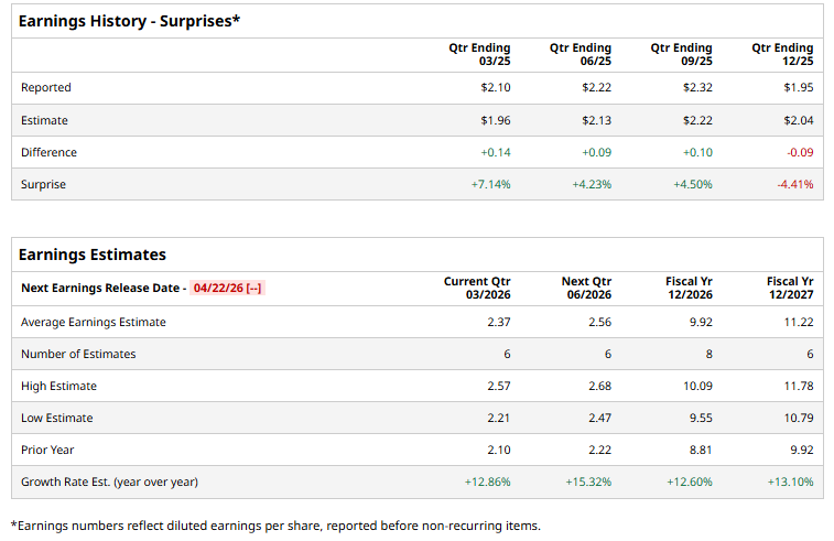 Texas-based Tyler Technologies, Inc. (TYL) is a leading provider of integrated software and technology services for the public sector. With a market cap of $14 billion, the company's client base includes local government offices throughout the U.S., Canada, Puerto Rico, and the United Kingdom. The software giant is expected to announce its fiscal first-quarter earnings for 2026 in the near term.