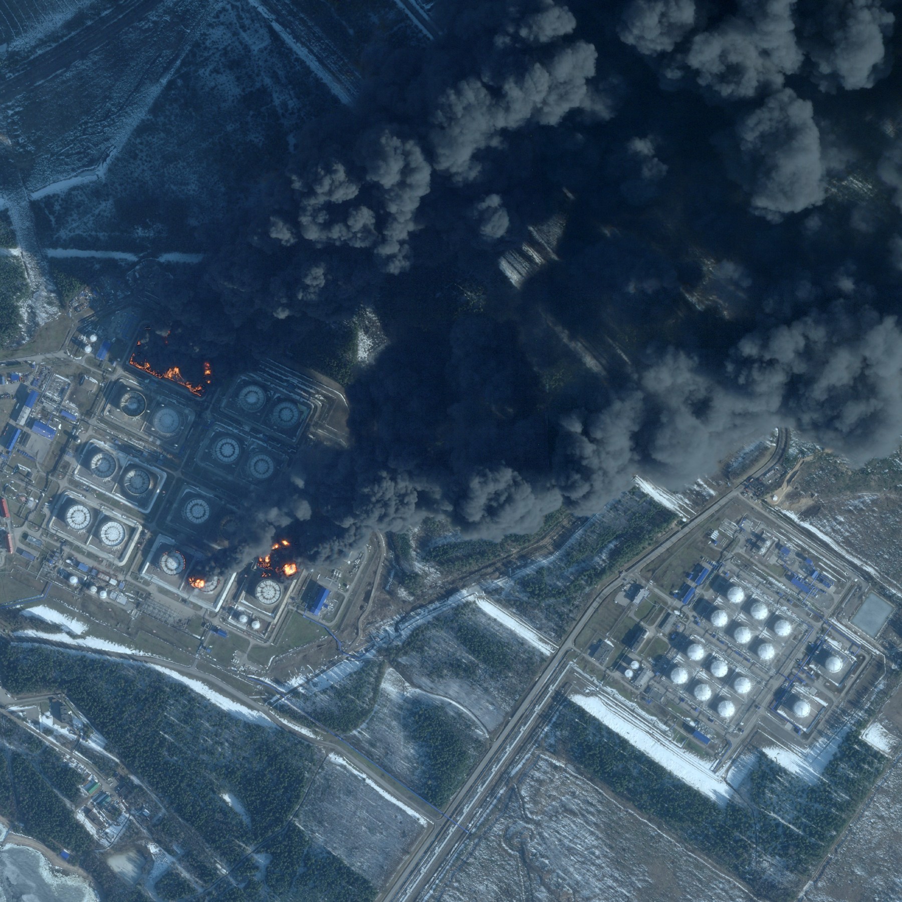 Ukraine’s General Staff said drones struck an oil tank farm and oil loading pier at the Transneft-Port Primorsk oil terminal in Primorsk, west of St Petersburg. Satellite footage suggested at least five of the 18 tanks were damaged.