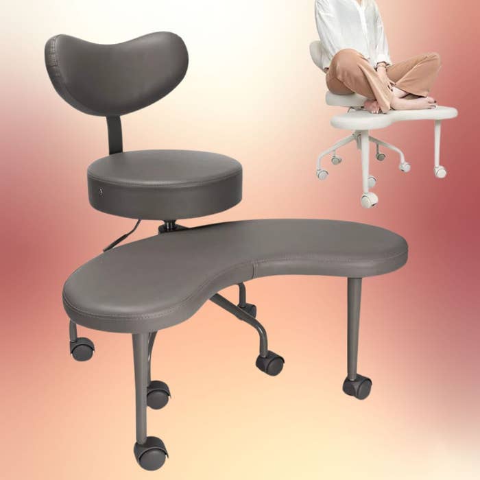This chair was strategically designed to support all types of sitting — whether it be kneeling, squatting one knee up or crossed legs — and is meant to promote movement throughout an otherwise stagnant work day. The foot rest portion swivels an entire 360 degrees around the set of the chair and the crescent-shaped cushioned backrest offers lumbar support that users claim have made their hips and back feel better at the end of the day. You can find this chair in four colors and two seat heights.