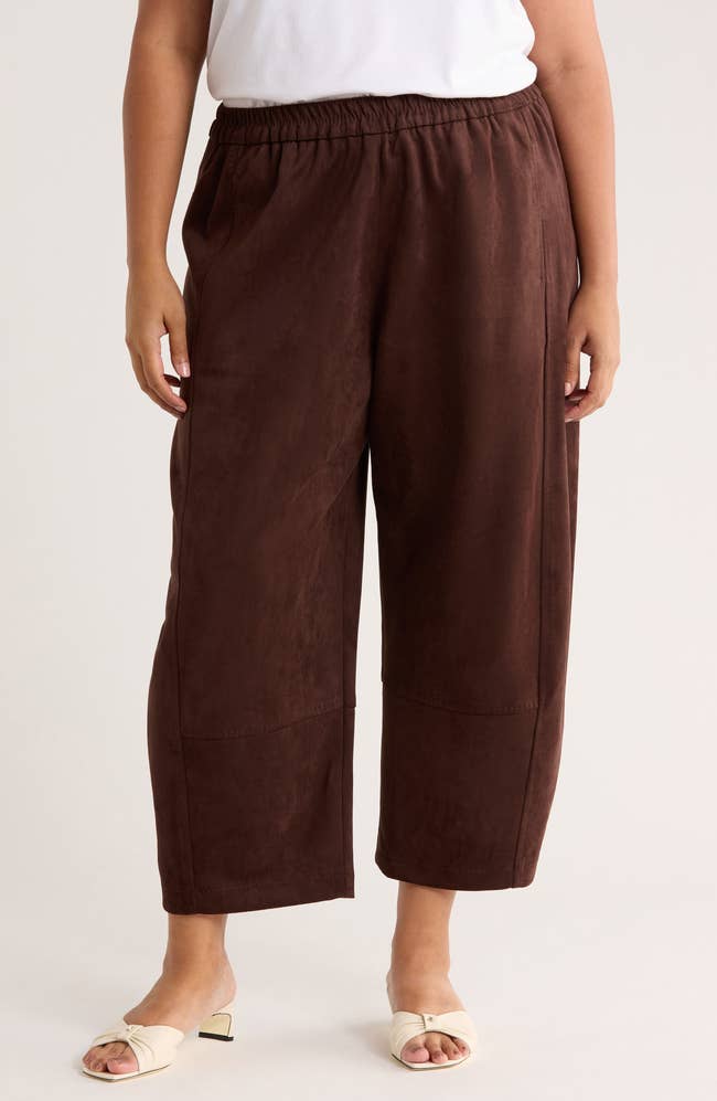 Promising review: "True to size in the waist. Legs are larger than in the photo. I’m 5’2” & the length hits right at the ankle, turning these into full-length trousers rather cropped. Fabric is gorgeous, buttery soft, high quality."   —Karin