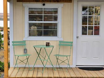 Promising review: "Perfect size for our quaint balcony space in our condo building. The vibrant chartreuse color couples perfectly with our retro robin egg door. Lightweight, already assembled, and super easy to clean. The price makes this set a no-brainer. (It's cheaper than Target and CB2, but it is equal in quality.) Awesome summer buy." —Nouvelle Mere