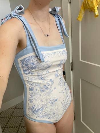 Promising review: "This is one of my favorite swimsuits. I have had it for over six months and wear it about once a week, and it hasn’t stretched very much. It was a little bit big, and I could have gone down a size, but it's still really cute." —Brooke