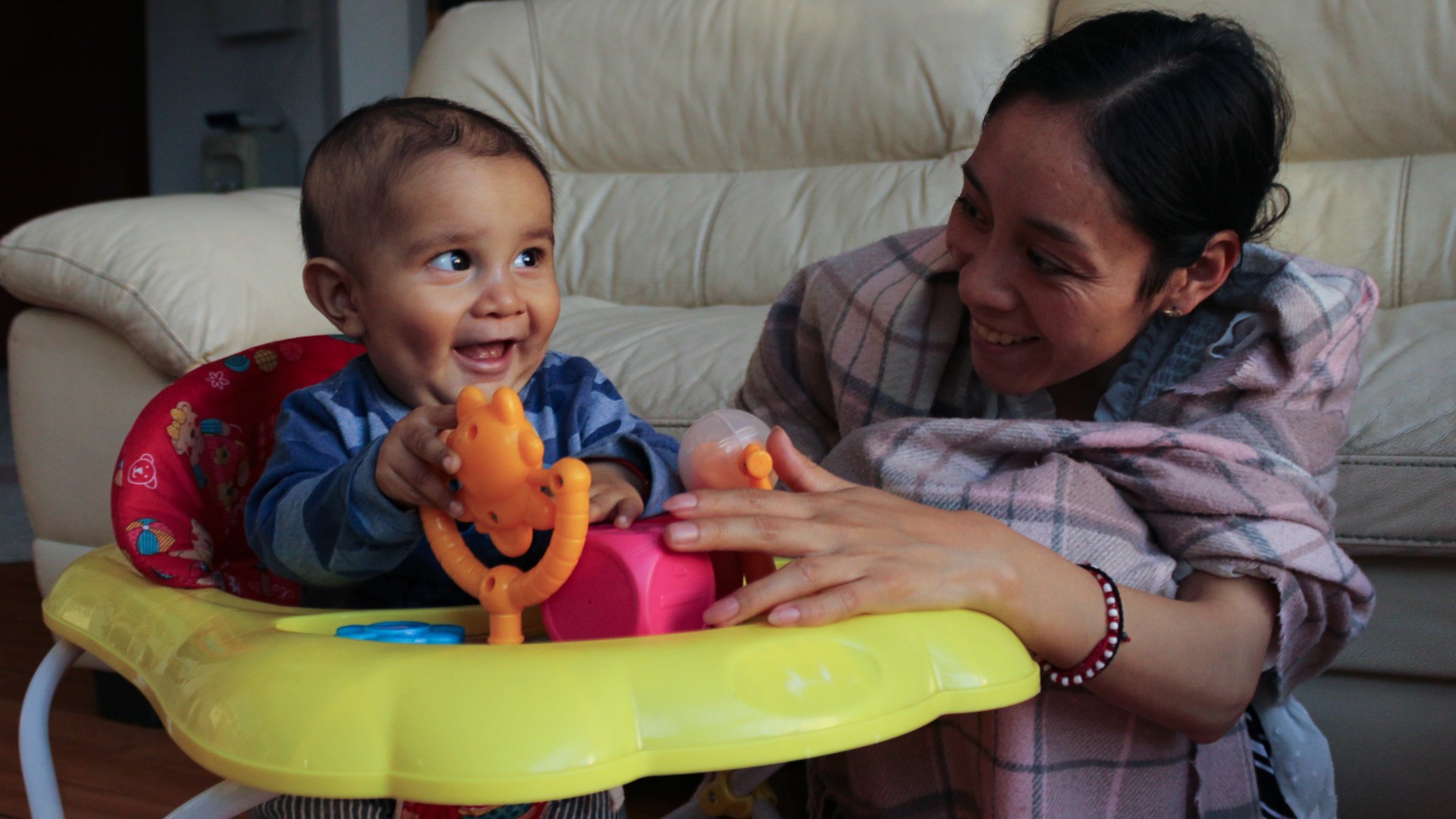 Later, in the centre’s small garden, Luisa plucks a red bougainvillaea and waves it gently in front of her son’s face. He laughs when the petals brush his skin. When she shifts the flower to his right side, he does not react. She moves it back. Sweat gathers on his forehead from the fever. Luisa wipes it gently with her sleeve and presses a kiss to his skin.