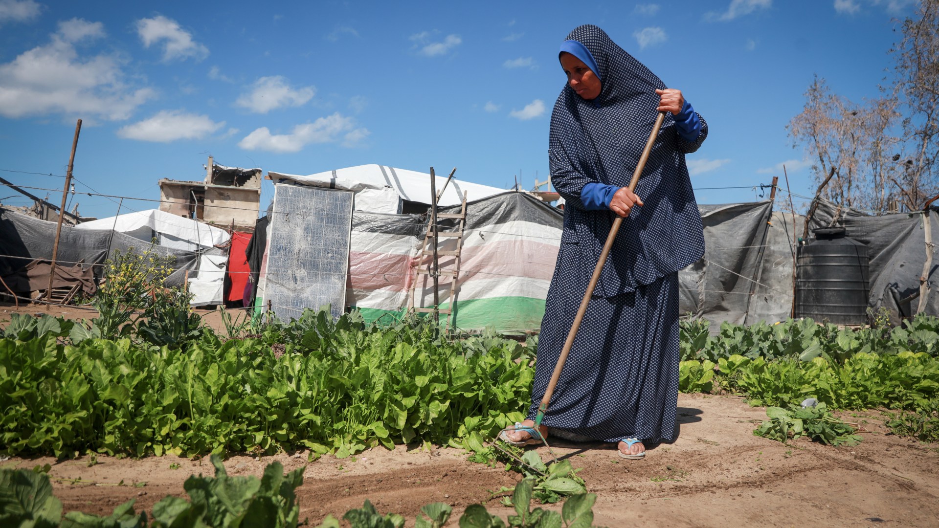 “The only solution is to live and to hold on to my land,” she says, pointing to the crops she has planted. “Eggplants, peppers, and tomatoes … During Ramadan, we planted arugula, parsley and spinach. Gaza’s land is fertile; if you give to it, it gives back.”