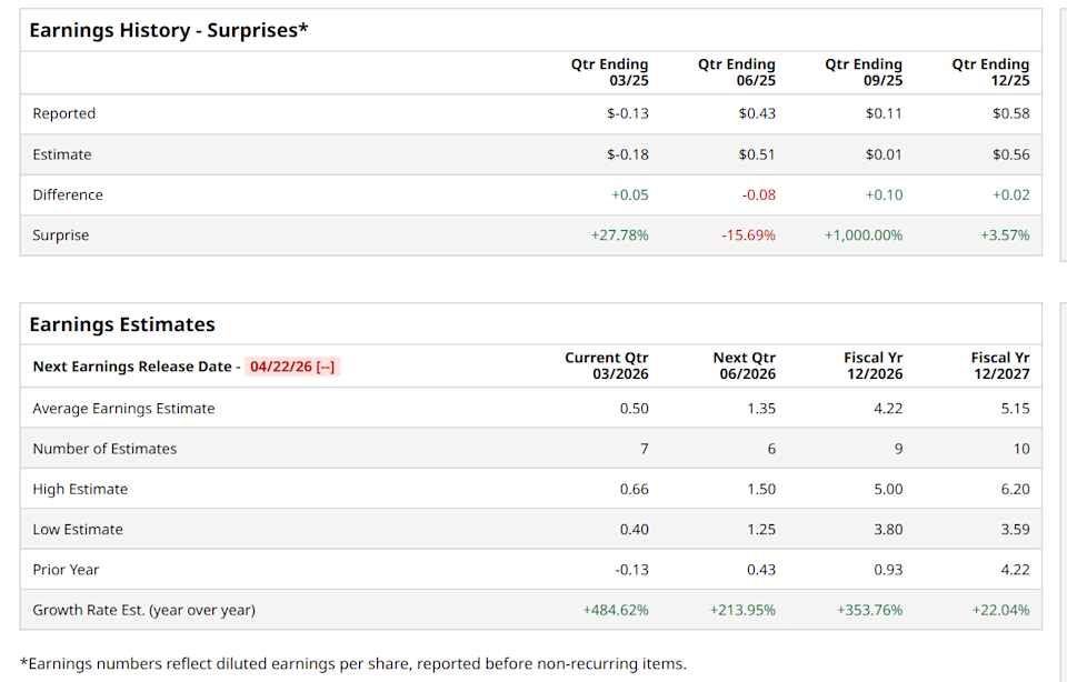 Valued at a market cap of $18.4 billion, Southwest Airlines Co. (LUV) is a passenger airline company that provides scheduled air transportation services. The Dallas, Texas-based company is scheduled to announce its fiscal Q1 earnings for 2026 in the near future. Ahead of this event, analysts expect this airline company to report a profit of $0.50 per share, up 484.6% from a loss of $0.13 per share recorded in the year-ago quarter. The company has topped Wall Street’s earnings estimates in three of the last four quarters, while missing on another occasion. In Q4 2025, LUV’s EPS of $0.58 surpassed the consensus estimates by 3.6%. Everyone Is Talking About Volatility. That’s Not The Story. Should You Buy the Dip in Western Digital Stock as Google Launches TurboQuant? Iran, Oil Prices and Other Key Things to Watch this Week Stop Missing Market Moves: Get the FREE Barchart Brief – your midday dose of stock movers, trending sectors, and actionable trade ideas, delivered right to your inbox. Sign Up Now! For the current fiscal year, ending in December, analysts expect LUV to report a profit of $4.22 per share, representing a 353.8% increase from $0.93 per share in fiscal 2025. Its EPS is expected to further grow 22% year-over-year to $5.15 in fiscal 2027. LUV has gained 8.8% over the past 52 weeks, trailing both the S&P 500 Index's ($SPX) 11.9% return and the State Street Industrial Select Sector SPDR ETF’s (XLI) 21.4% uptick over the same time period. On Jan. 28, LUV delivered its Q4 results, and its shares skyrocketed 18.7% in the subsequent trading session. While the company’s revenue increased 7.4% year-over-year to $7.4 billion, it missed analyst expectations of $7.52 billion. However, its adjusted EPS of $0.58 grew 3.6% from the same period last year, topping Wall Street estimates of $0.56. Management’s outlook further supported investor confidence. For Q1 fiscal 2026, the company expects adjusted EPS of at least $0.45, marking a turnaround from a loss of $0.13 per share in Q1 2025. Wall Street analysts are moderately optimistic about LUV’s stock, with a "Moderate Buy" rating overall. Among 24 analysts covering the stock, 10 recommend "Strong Buy," one advises a "Moderate Buy,” nine suggest "Hold," one indicates a "Moderate Sell," and three suggest "Strong Sell.” The mean price target for LUV is $46.38, indicating a 26.3% potential upside from the current levels. On the date of publication, Neharika Jain did not have (either directly or indirectly) positions in any of the securities mentioned in this article. All information and data in this article is solely for informational purposes. This article was originally published on Barchart.com