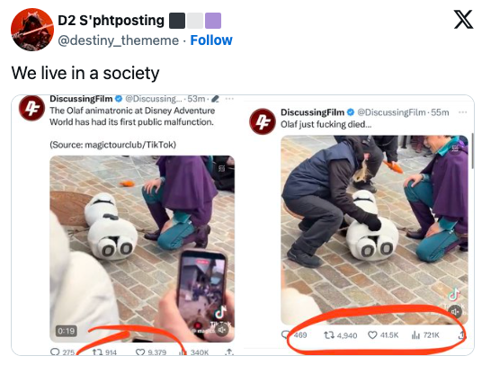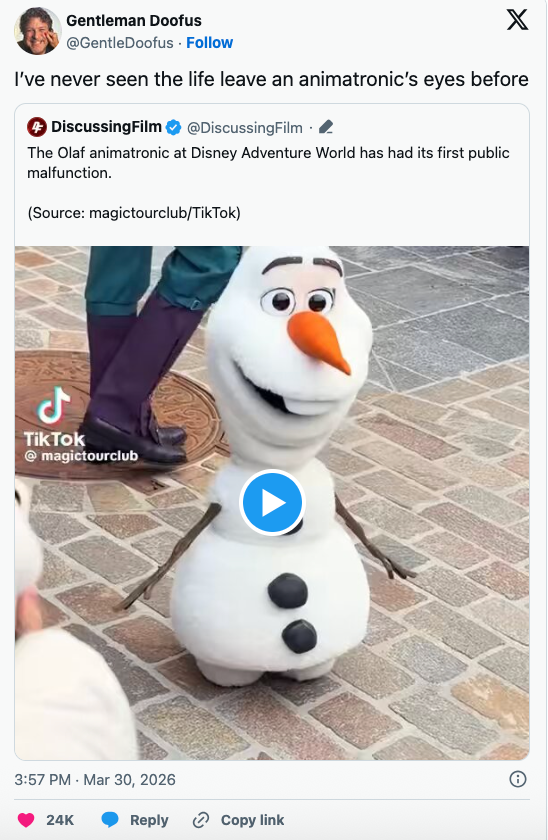 Over 31 Million People Are Losing It At This Video Of Robot Olaf "Dying" At Disneyland