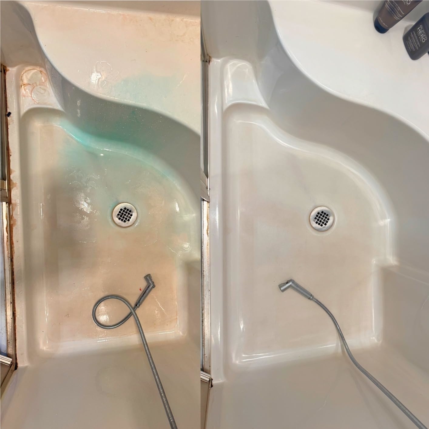 Promising review: "This product works — see the change in our bathroom floor as shown in the attached picture, with the number of applications indicated within each sub-picture. It took us three applications to fully clean up our shower! We sprayed this product after showering, while the floor was still wet, and then waited 24 hours to clean up the residues. One cannot expect immediate results (i.e. within a few hours). Rather, a clean floor takes many days. Your patience will be rewarded, though!" —J.B.