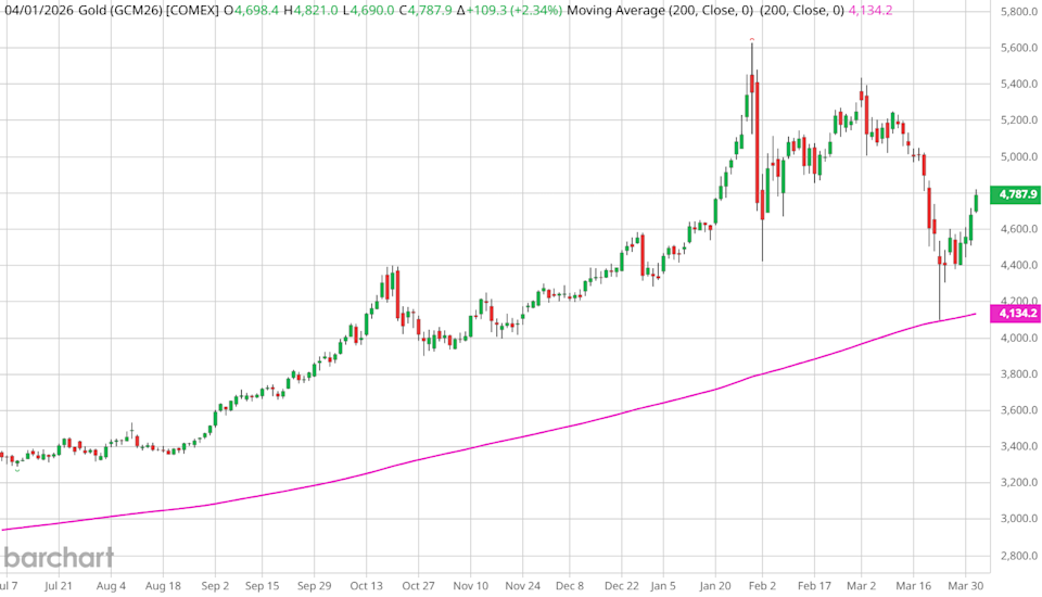 Gold just did something traders have waited months for. A clean, “textbook” bounce off the 200-day moving average. That level has historically acted as a major line in the sand — including the last time we saw this in late 2023, which led to a strong upside run. But what makes this current setup different is something most traders aren’t paying attention to: Alcoa Stock Has Surged Higher on Aluminum Price Spike. 1 Analyst Still Thinks It Can Gain 14%. Dollar Falls on Optimism Iran War Will End Soon Dollar Declines Amid War-End Optimism Tired of missing midday reversals? The FREE Barchart Brief newsletter keeps you in the know. Sign up now! Gold technically entered a bear market… while still holding above the 200-day. That combination doesn’t happen often. In most markets, once an asset enters a bear phase (generally defined as 20% off the highs), it breaks key trend levels — especially the 200-day moving average. But recently, gold (GCM26) did the opposite. It pulled back sharply, yet still respected the long-term trend. That tells you one thing: The trend hasn’t fully broken, but the momentum has. And that’s where things get interesting. Before chasing the move, there’s one factor traders need to understand: Futures roll over. As futures contracts shift (April → June), price action can look like a selloff or bounce when it’s actually just positions being adjusted. That means part of this “bounce” could be structural — not purely demand-driven. This is where most traders get trapped: They see the bounce Assume the bottom is in Enter too early Instead, the focus should shift to confirmation. According to Senior Market Strategist John Rowland, CMT, the key isn’t the bounce. It’s what happens next. For trading using SPDR Gold Shares ETF (GLD) as a proxy, the critical resistance level to watch sits around $435. That’s the level where: Previous positioning was exited Resistance is clearly defined A breakout would confirm strength returning Until that level is reclaimed, this is still a market in transition, not a confirmed reversal. Gold gave traders exactly what they look for: a clean bounce off the 200-day. But this isn’t a confirmed bottom yet. Right now, the setup is: Structurally strong (holding trend) Momentum is weak (recent selloff) Awaiting confirmation (key resistance ahead) That’s why the current approach is simple: Wait, don’t chase. Because in markets like this, the move isn’t made at support. It’s made after confirmation. Watch this clip on Gold: Stream the full Market on Close episode Track gold using Barchart’s Futures Market Overview & Gold Stocks Watchlist On the date of publication, Barchart Insights did not have (either directly or indirectly) positions in any of the securities mentioned in this article. All information and data in this article is solely for informational purposes. This article was originally published on Barchart.com