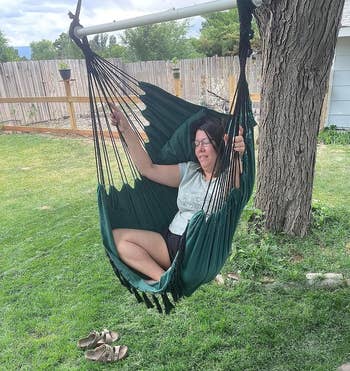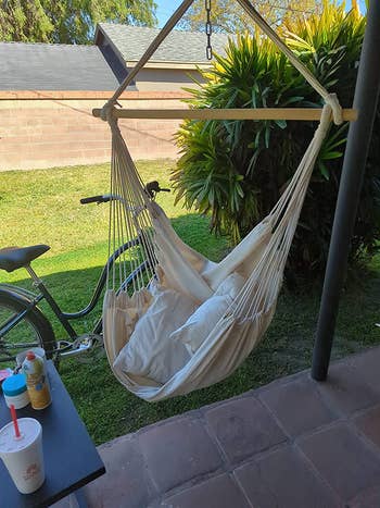 We hope you love our recommendations! While every product is independently chosen by our editors, BuzzFeed and our publishing partners may collect a share of sales or other compensation from the links on this page. You can read more about how our affiliate partnerships work in our Editorial Standards & Ethics Guide. "I’ve been using it every day to chill outside, and it’s great." Promising review: "So much fun on a summer evening. East to light, empty, and clean. Smokeless, unless your fire is not lighting. No difference I can tell from the Solo Stove, excellent quality. Gives off a good amount of heat, too." —S Robles Get it from Amazon for $25.99+ (available in two sizes and four colors). This comes with all the hardware you need to hang it! Promising review: "Absolutely love this hammock chair!!! It looks beautiful in my garden, and my friends love to sit in it when they come over." —Kat Payne Get it from Amazon for $59.99+ (available in six colors). Promising review: "I am thoroughly delighted with these flamingos. They're perfect for enhancing my pool area. The solar lighting that maintains its glow throughout the night is a notable advantage." —Magdaia Get it from Amazon for $19.99 (also available in packs of two and four). Promising review: "I rarely write product reviews, but this has far exceeded my expectations. I saw my first-ever oriole a few weeks ago. He was here and then gone. Decided to get a feeder. I was unsure how this would work. I bought two. Put out the oranges and put grape jelly in the cups. Day one: Nothing. But on the second day, I had tons! Every day since, I have had at least 7–14 birds and am going through a ton of grape jelly." —Amazoncustomer It doesn't require a pump either — all you have to do is whisk it through the air to blow it up. It's suggested that you close the sleeve opening before ending each movement and keep the mouth closed until you begin the next one. Once there's enough air inside, you'll be good to go! Promising review: "I'm in love with this product! I’ve been using it every day to chill outside, and it’s great! It's easy to set up, set down, and it's super comfy." —Alexus Get it from Amazon for $38.98+ (available in 20 styles). Promising review: "I love this! It’s well-painted, and the solar light works great. It is the cutest thing on my patio table." —solowithpits Promising review: "We bought this for a rather large umbrella over our table in the backyard and used it for the first time last night. We were less concerned about mosquitoes because we have a service to eliminate them — it's the bees that were disturbing our outdoor meals and events. My wife hosted a few friends last night, and they all fell in love with this. They've all been fighting with bees lately, and they were not bothered once by any bugs. Every friend bought the netting on the spot – you're welcome to the company that manufactures this product. Also, when you're inside the netting sitting on chairs, it's almost as if the netting is invisible; most of the time, you can't tell whether it's even there, especially at night." —Sara Olshansky Promising reviews: "Love love love it. We have had 3 inches of rain in the last week, and the cushion was dry today when I went out to get in the pool. Definitely would recommend. Easy to assemble." —P. K. Weiss "These are great! The cushions are thick and comfortable. They have been outside on an uncovered patio exposed to the North Carolina elements day and night. They still look brand-new. They are a great buy." —Teresa Butts Get it from Amazon for $39.99+ (available in four sizes and eight colors). Promising review: "Love this little pollinator house! I wasn’t sure it was attracting them at first, but the next time I looked, a bunch of the tubes were sealed off. The bees seem happy, and my garden is doing great." —Jenna Preston Get it from Amazon for $12.61+ (available in two colors). Promising review: "Doesn’t disrupt nearby plants. For weeds with long roots like bindweed, follow along the weed's root. You’ll get a feel for it with practice. The tip has a sharper angle than my last one, so it's good for cutting the roots of shallow-rooted plants. It’s a game-changer, for sure. Good, sturdy, well-made, and has a comfortable handle." —Hanna Grampa's Gardenware Co. is a family-owned small business that makes products that make the gardening, weeding, or harvesting of your land a little easier. Promising review: "Oh my god, I friggin' love this tool. I bought this on a whim, given my husband, and I bought our first house and know nothing about caring for a yard, and boy, has it come in handy. Our new house had a ton of weeds in the front yard, and this tool helped me get most of them out in no time. In fact, the process of yanking out the weed was strangely satisfying! I don't think anyone can say that weeding is fun, but this tool made it as close to fun as you can get." —JG Promising review: "This is a game changer! It's the perfect companion for those long summer evenings spent outdoors. The citronella and cedar wood formula effectively repels mosquitoes, allowing me to enjoy my backyard without the constant annoyance of buzzing insects. The clean-burning formula produces minimal smoke and soot, making it a pleasant experience. Plus, the easy-pour bottle makes refilling my torches a breeze. If you're looking to reclaim your outdoor space, I highly recommend this product!" —Jose A. Acevedo Get it from Amazon for $14.37+ (available in three sizes). Promising review: "Was actually a little bigger than I expected to be for the price. Beautiful and well worth the money. Sounds beautiful." —Ashleigh Yates Get it from Amazon for $17.99+ (available in two sizes). Promising reviews: "It’s perfect for creating the most serene atmosphere on my patio. I’m purchasing another one for outside the front door!" —Zen Cycler "Lovely, easy-to-set-up fountain! I wanted something simple and