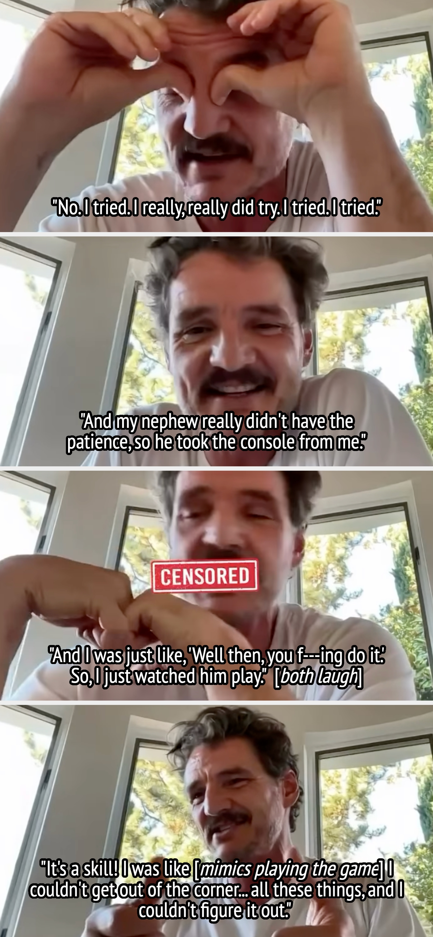 I’m the SEO Resident here at BuzzFeed, and I cover everything from trending pop culture and celebrity news to evergreen entertainment and lifestyle topics. Pedro: "What was your nickname as a child?" Dakota: "Mhm. Spelled the way the frog is spelled. C-O-Q-U-I." Pedro: "Ah, Coqui. Coqui... Cock." [both laugh] Dakota: "Yeah. My nickname as a little girl was cock. You f---ing idiot." "I would say that there's a gap between my back molar and my front tooth. That's where the chicken gets stuck, and it continues to sort of burn. But I've gotten to the point—" [turns directly to the camera]. "You should know this, too. That I'm used to the sensation of my jaw having been melted away by battery acid, maybe. And then, I think I'm going to go to the Whitney Museum this afternoon, unless I shit myself. Goodbye." Interviewer: "Do you think you're a heartthrob?" Pedro: "Really? [laughs] That's right. Yes, I am. Yes, I'm a heartthrob." Interviewer: "Do you ever look at Instagram accounts devoted to you being a heartthrob when you're feeling down?" Jimmy: "Is that six extra shots or six total shots in one cup of coffee?" Pedro: "I cannot— I cannot begin to tell you how violating this was. There's so much context to why it's become six shots of espresso. It was always a quad. But then I feel like the cups got bigger and I don't know, the shots got less strong and at some point it became six, and it was an incredibly private morning ritual that I never wanted anyone to know about." Pedro: "Who does Oscar Isaac look like? Oh! I remember who you look like. That Muppet I told you about." Pedro: "The grumpy eagle." [Oscar slaps him] [both laugh] Pedro: "I got a special Mandalorian coin." Interviewer: "I got one from John, and I framed it." "I'm helping him go on tape for this new amazing role... and I'm reading the sides, and I'm like—" [points to himself] "He was in his late 30s, he had eight daughters, he's a slut, he's dangerous. I was like, 'This is perfect! For me.'" Interviewer: "Did you play that game before you starred in the adaptation?" Pedro: "No. I tried. I really, really did try. I tried. I tried. And my nephew really didn't have the patience, so he took the console from me. And I was just like, 'Well then, you f---ing do it'. So, I just watched him play." [both laugh] "It's a skill! I was like [mimics playing the game] I couldn't get out of the corner... all these things, and I couldn't figure it out." "One of my worst qualities... There are funny TikTok videos about having Latino parents, and if you hear an argument outside or somebody having any kind of an argument or a fight, you're literally—" [acts like he's eavesdropping]. "At that point, it's really late. I've got to get up in the morning. I take an Ambien to go to sleep just in case. They've got my adrenaline kind of going and my hopes up. But I get a call, and I get told that I got the job after I took the Ambien. [laughs] And so, I was excited, I guess, but I didn't remember. I woke up in the morning, and the first thing that occurred to me was like, 'Oh, man. I really want that job.'" Josh Horowitz: "Would you rather get 'This is the way' tattooed on your face or your back?" Josh Horowitz: "That might limit your roles if you have it on your face." Pedro: "And on my back might be a completely different message as well." Interviewer: "Are you about to take a polygraph exam?" Pedro: "Because you're trying to make me nervous, and I'm a vulnerable person, and it works... And I'm hungover." "I think the Americans have a much more horrifying version of an Irish exit... It's terrible, and we get canceled. Irish exit is not an early leave. It's like— Oh, really? I misunderstood it. Wait, I need the room to help me. My publicist is like—" [mimics a director saying, 'Cut']. Oscar: [reads cue card] "Pedro Pascal mustache." Pedro: "You know what, I'd like to talk about the mustache. I think today's the day. [motions to Oscar's mustache] You see, this is powerful, clean-shaven... this is powerful facial hair. [Motions to his own mustache] This looks like you're undernourished. I actually was doing a play before Narcos started shooting, and the boss came to see the play, and he was like, 'Keep the 'stache,' and I was like, 'Okay,' and now people are like, 'Don't ever get rid of your mustache. You look like my grandmother without it.'" Moderator: [Earlier in the video] "Would you rather have a mouth full of bees, or one bee in your butt?" Moderator: [Two minutes later] "Would you rather be constantly itchy when you're wearing clothes, or be constantly itchy when you're naked?" Pedro: "And you have such a great body." Chris Evans: "Well, you can all help me itch it." [Pedro laughs] Pedro: "Where's that scratch? That's the bee." [everyone laughs] Interviewer: "Where do you think people go wrong with modern dating?" Chris: "I think they go wrong by thinking that someone else is going to fill the empty gaps... if you're not okay without it, you're never going to be okay with it, so make sure that you're whole. You've got to give the best version of yourself—" [Dakota and Pedro look at each other and start laughing]. Pedro: "I'll fill those empty gaps." [everyone laughs] Dakota: "What kind of kid were you in high school?" Pedro: "I changed a lot, like Madonna. I was like a theater nerd and also like a little bit of a raver... like techno. It was the early '90s. Like Dr. Seuss f---ing hats, parachute-type pants, thick rubber-sole sneakers. It was pretty great." "I think everyone thinks I'm some kind of an athlete, and I'm really not. I'm just an actor, and my back is killing me." Ebon Moss-Bachrach: “There’s this particular Chilean dessert, Torta Chilena." Ebon Moss-Bachrach: “Yeah, it’s like layers—” Pedro: “That would be a very typically Argentinian cookie!” [laughs] Pedro: "You suffocate your father, and then you fire General Maximus after that." Pedro: "Well, you actually tell people to kill him." Ari: "That feels a li