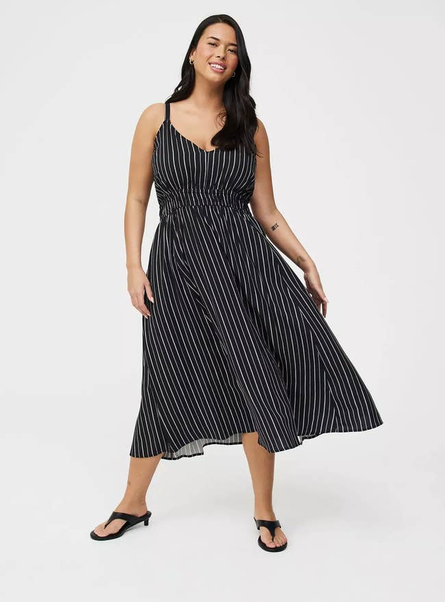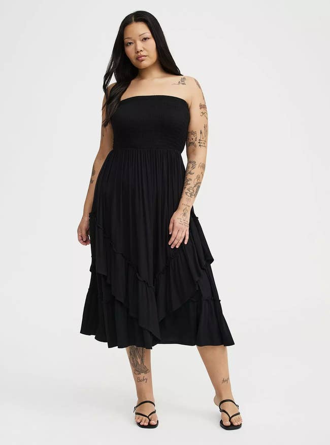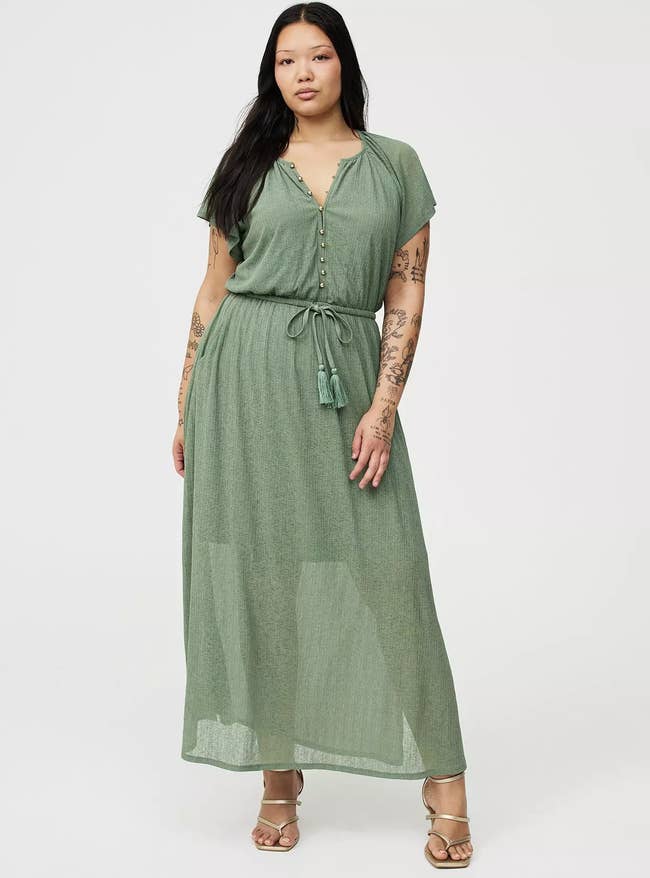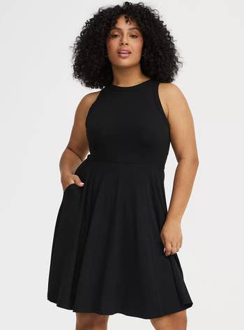 Promising review: "I needed a dress for an upcoming vacation and tried this on, and it felt like BUTTAAA. I have an hourglass shape, and it conforms to all my curves. Perfect dress for dinner out or somewhere nice. Would absolutely buy it in other dark, earthy colors. (Blue, green, brown, wine red) Hint hint Torrid." —FLVISITOR05