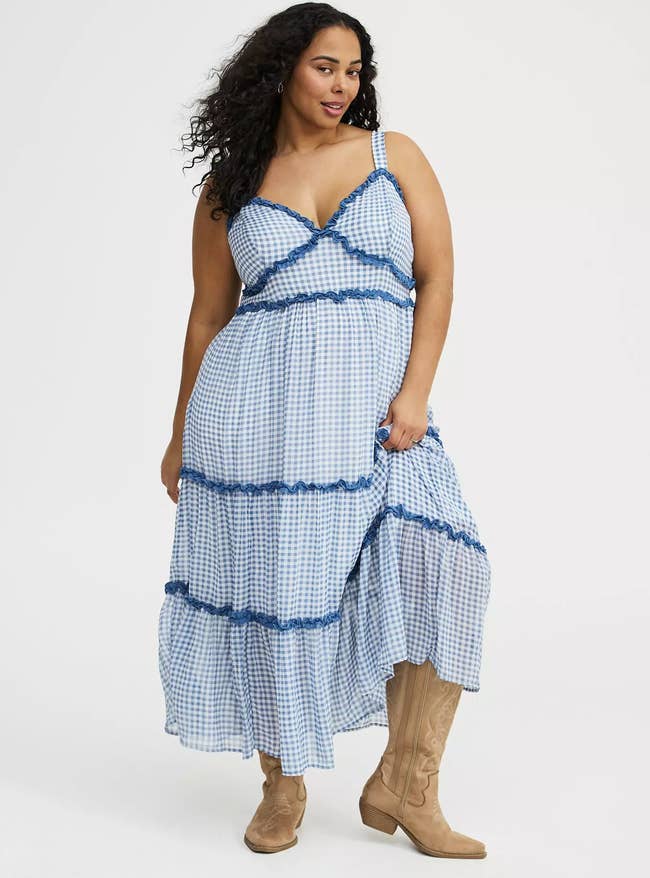 Promising review: "Really cute! Move over, Dorothy! This pink gingham plaid is sooooo fresh! Perfect!!!!!! The length was down to my knees, so a very conservative length. Not quite as conservative up top, easily fixed with a little cami if you’re concerned about that. I have a feeling the fabric may wrinkle easily. Dress arrived pretty wrinkled, so just be prepared — keep wrinkle guard on hand!! Hopefully I’m wrong about it wrinkling! 🤞🏼 Fabric is soft ands light! Perfect for warm spring days and summer days too! I do appreciate that the dress is lined and the colors are very true to what is in the photos 🩷🩷🩷🩷. Beautiful dress! Five stars, despite the wrinkles!" —MAMABMN
