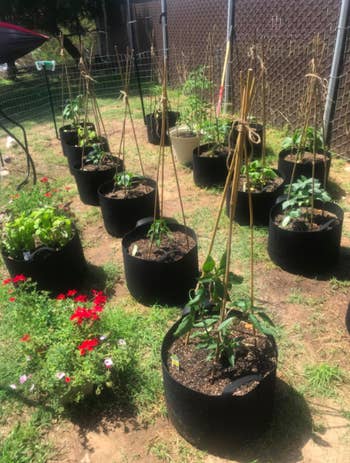 Promising review: "So I'm no plant pot-biologist, but these are awesome. They're durable and strong. The handles are stitched on super well. They are also solid enough to hold the soil and plant with no problem while letting enough oxygen to the roots to create a bigger root ball, leading to bigger plants/yields. Best mesh flower pots by far." —Ram C